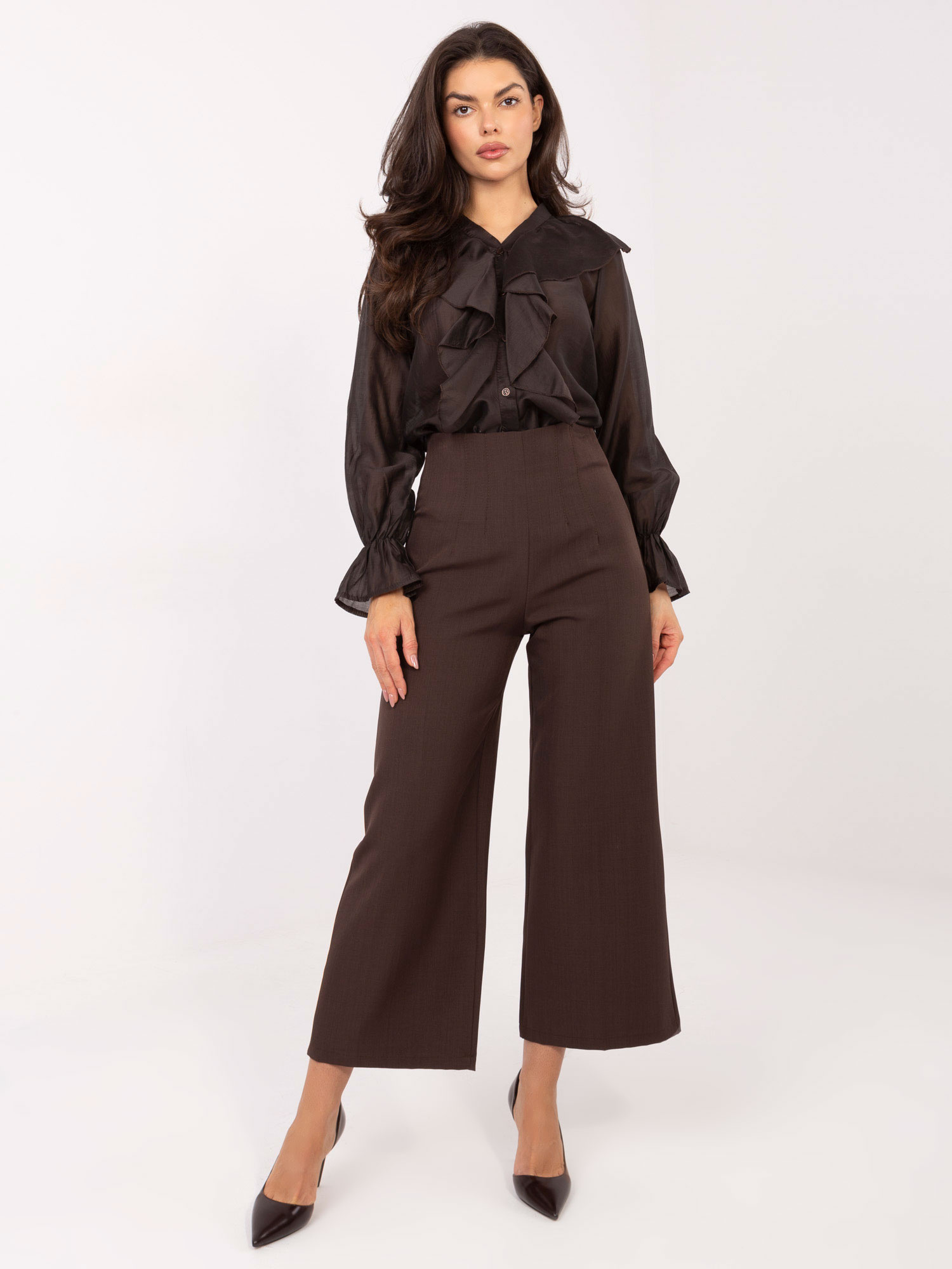 Czekoladowa przezroczysta koszula z dekoltem V .