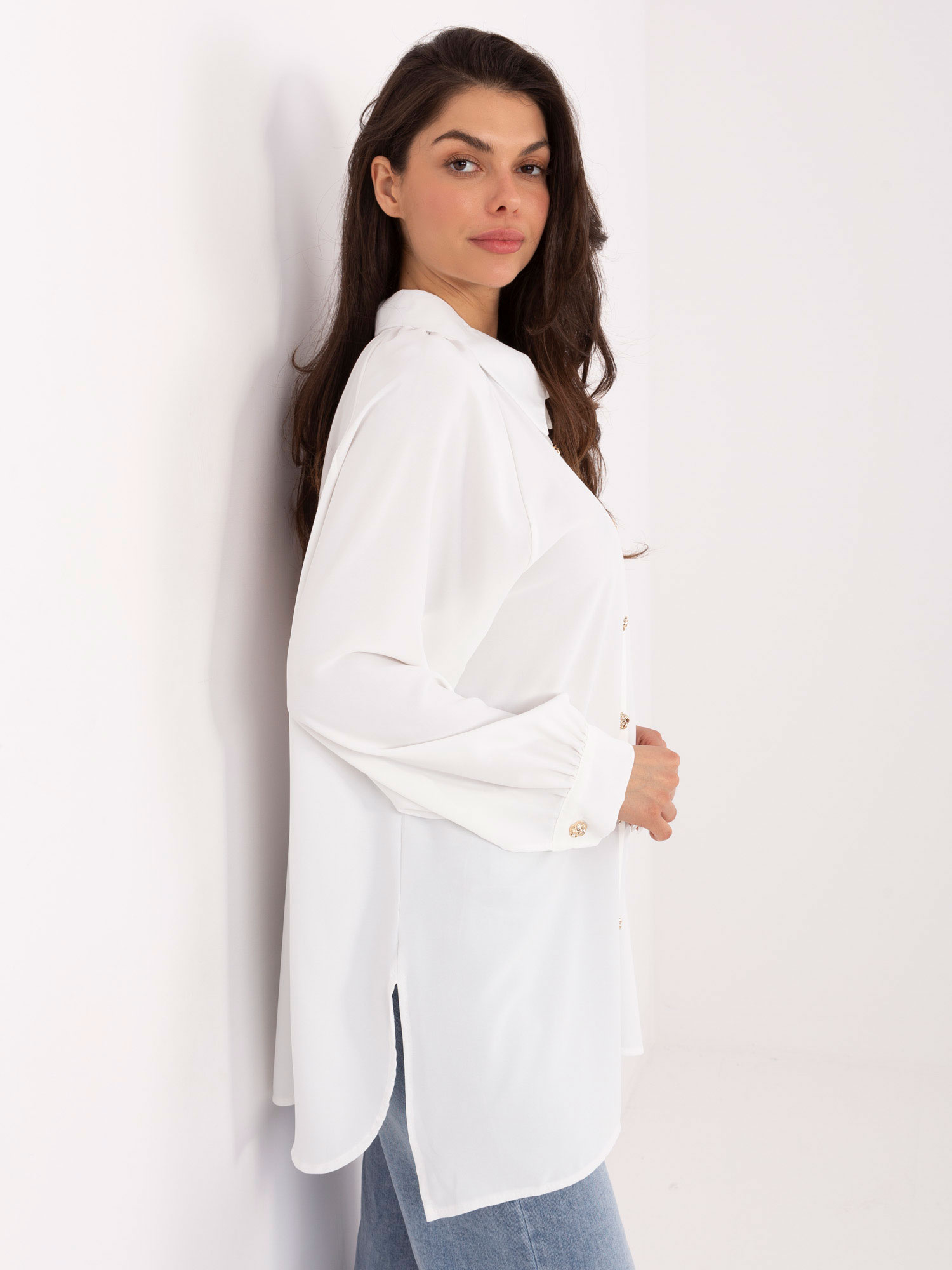 Biała długa koszula z ozdobnymi guzikami