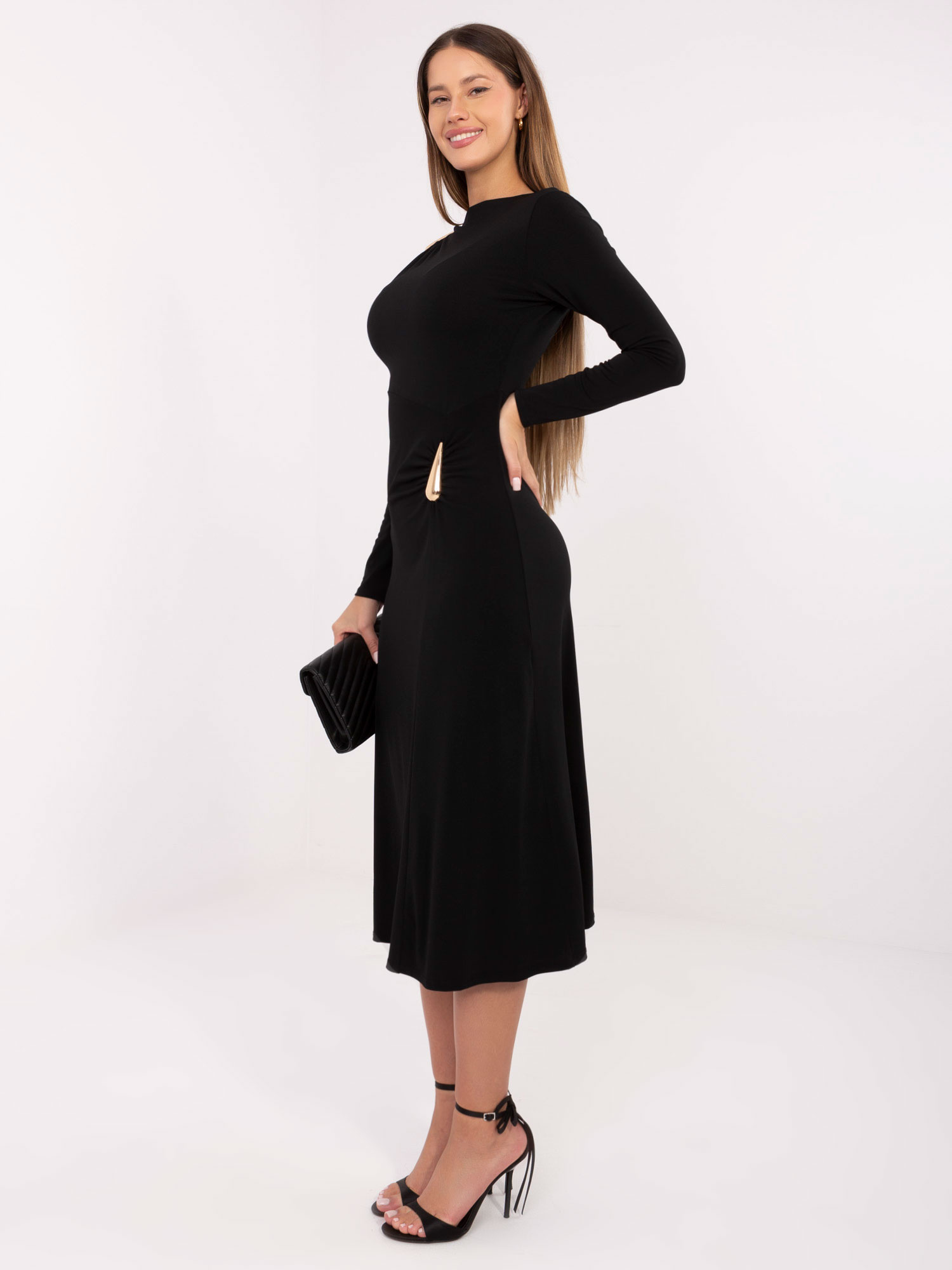 Wymiary sukienki w rozmiarze one size mierzone na płasko: szerokość pod pachami - 44 cm, długość całkowita - 126 cm, szerokość w biodrach - 52 cm, szerokość w talii - 34 cm, długość rękawa - 34 cm.