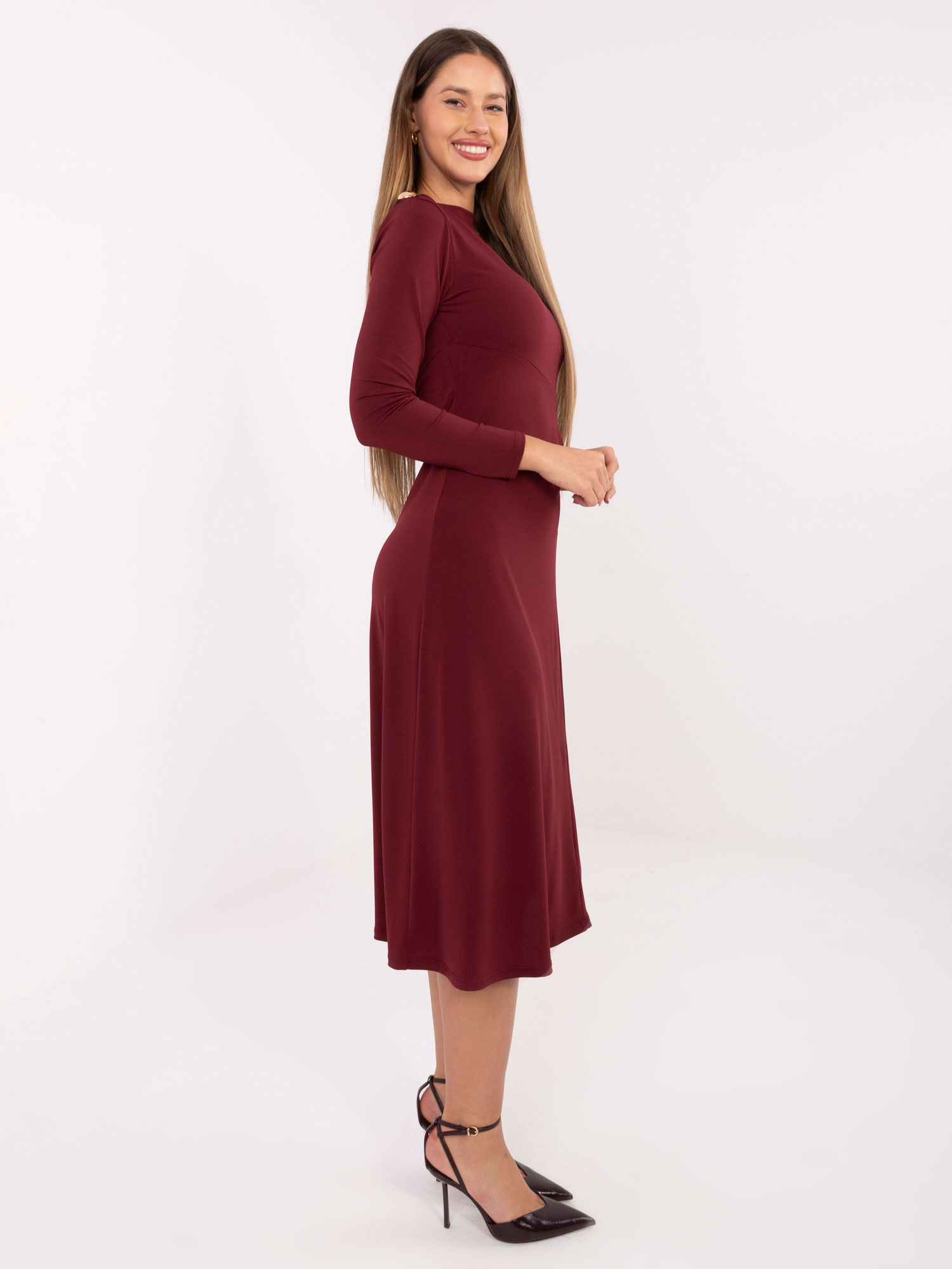 Wymiary sukienki w rozmiarze one size mierzone na płasko: szerokość pod pachami - 44 cm, długość całkowita - 126 cm, szerokość w biodrach - 52 cm, szerokość w talii - 34 cm, długość rękawa - 34 cm.