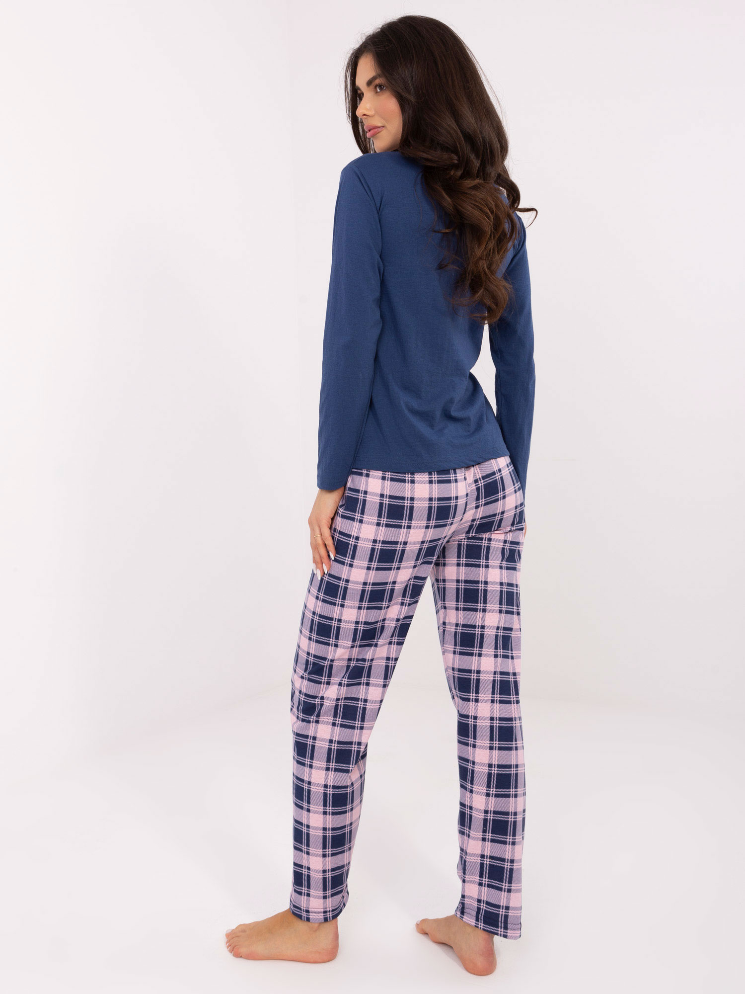 Ciemnoniebieska piżama ze spodniami w kratę .