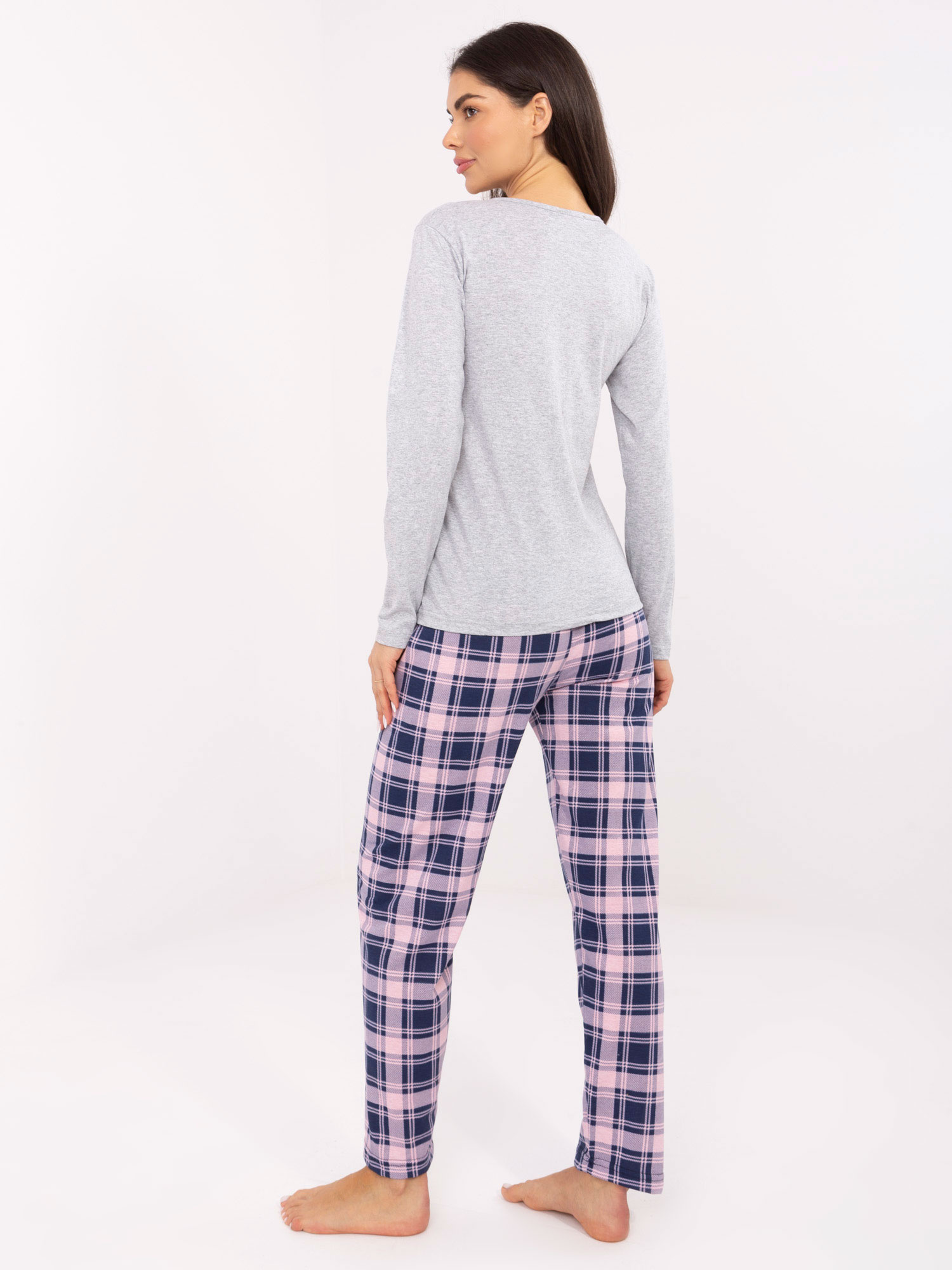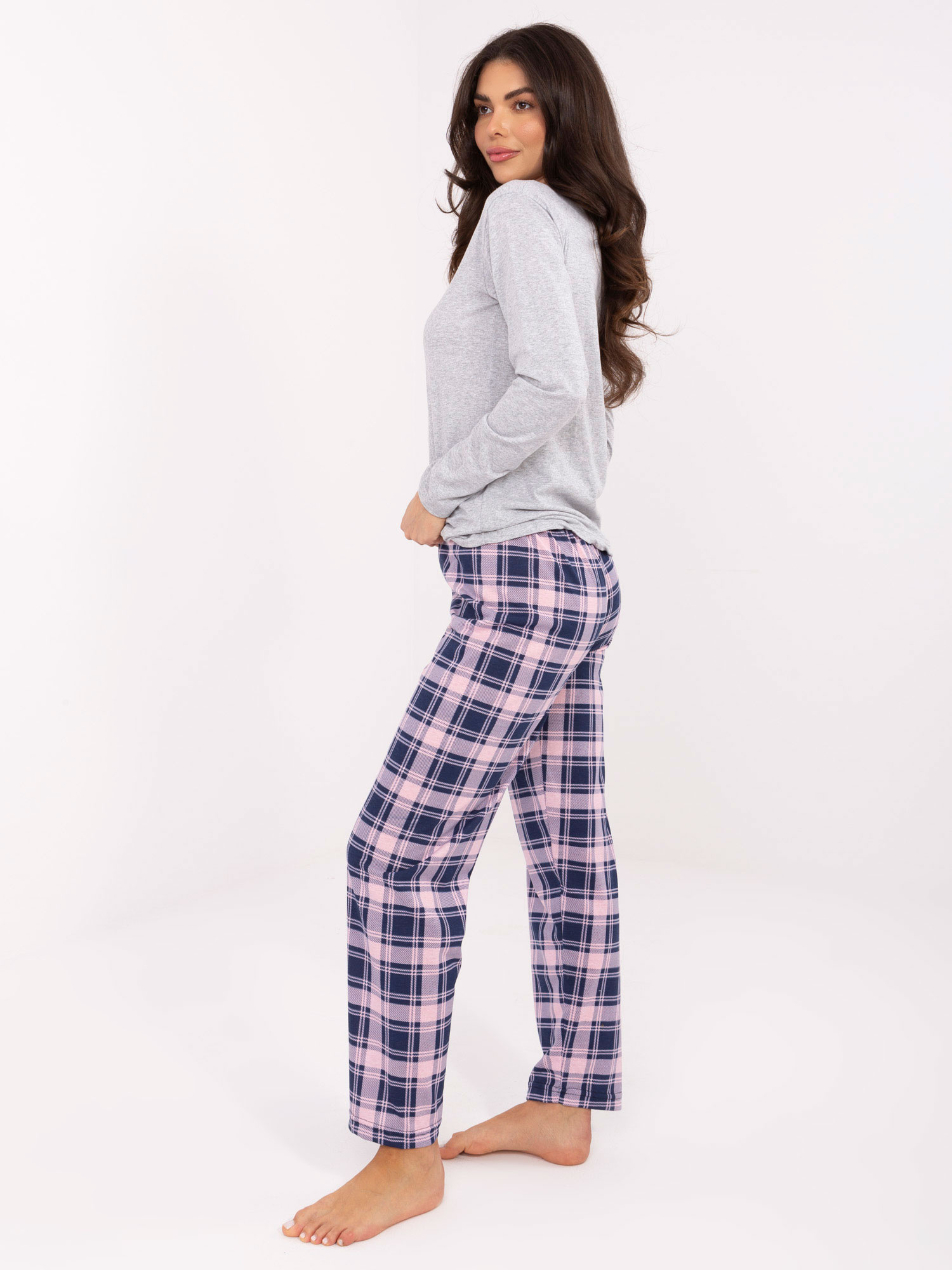 Wymiary piżamy w rozmiarze M mierzone na płasko: bluzka: szerokość pod pachami - 45 cm, długość rękawa - 57 cm, długość całkowita - 62 cm, szerokość na dole - 47 cm, spodnie: szerokość w pasie - 31 cm (na płasko), szerokość w pasie - 56 cm (po rozciągnięciu), szerokość w biodrach - 49 cm, długość całkowita - 96 cm.