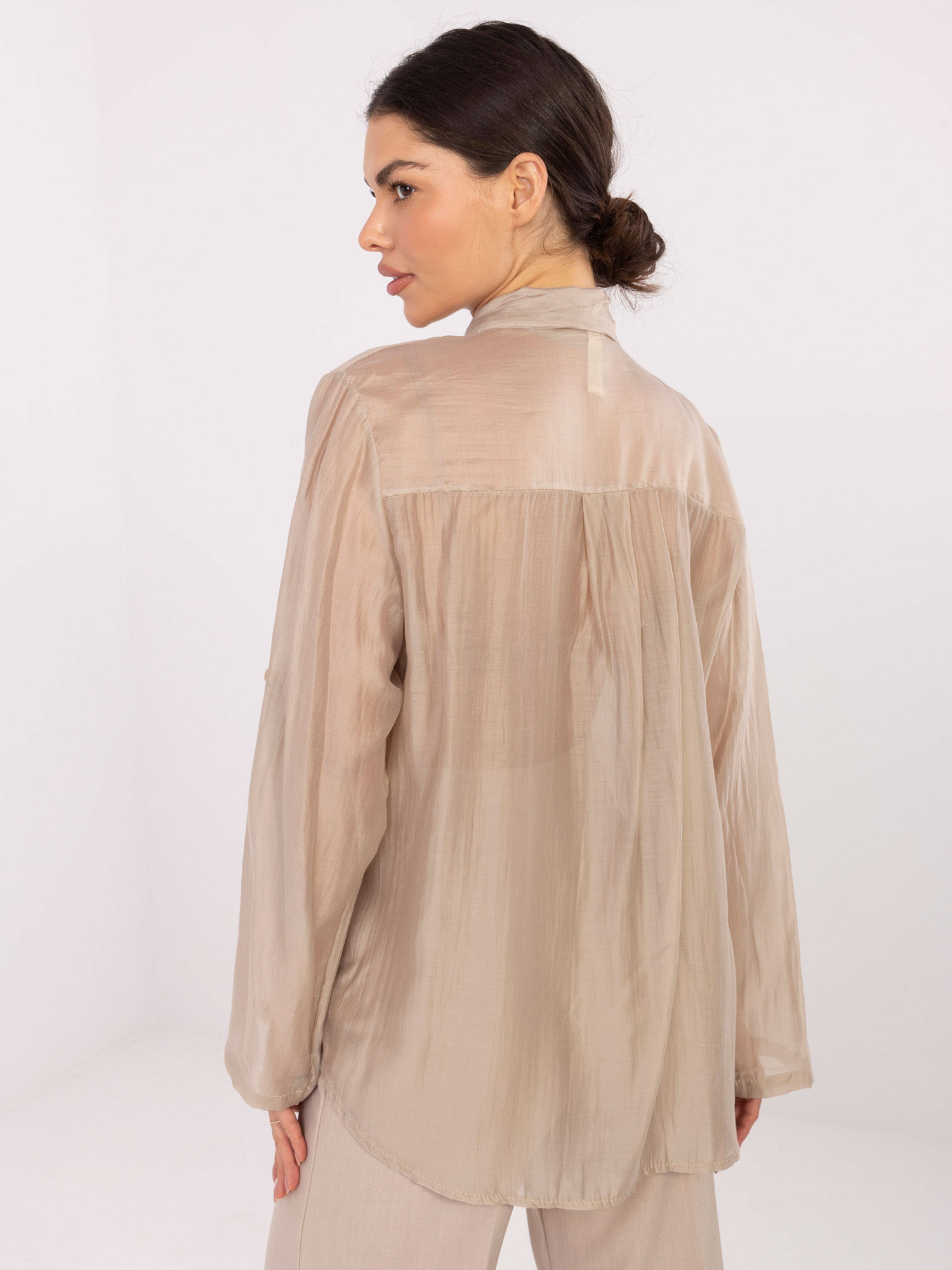 Wymiary koszuli w rozmiarze one size mierzone na płasko: szerokość pod pachami - 58 cm, długość całkowita - 72 cm, długość rękawa - 61 cm (od szwu), szerokość w biodrach - 59 cm.