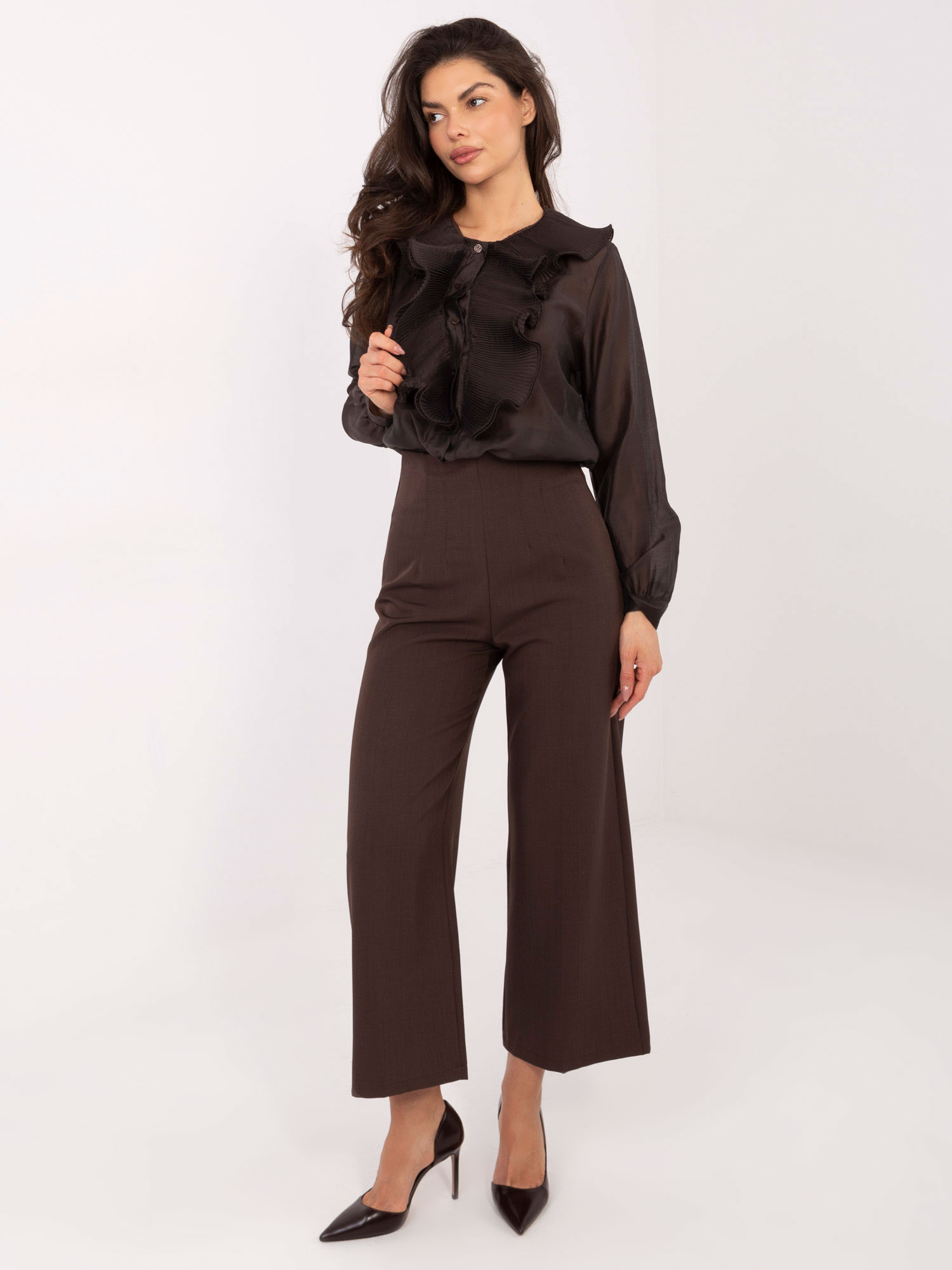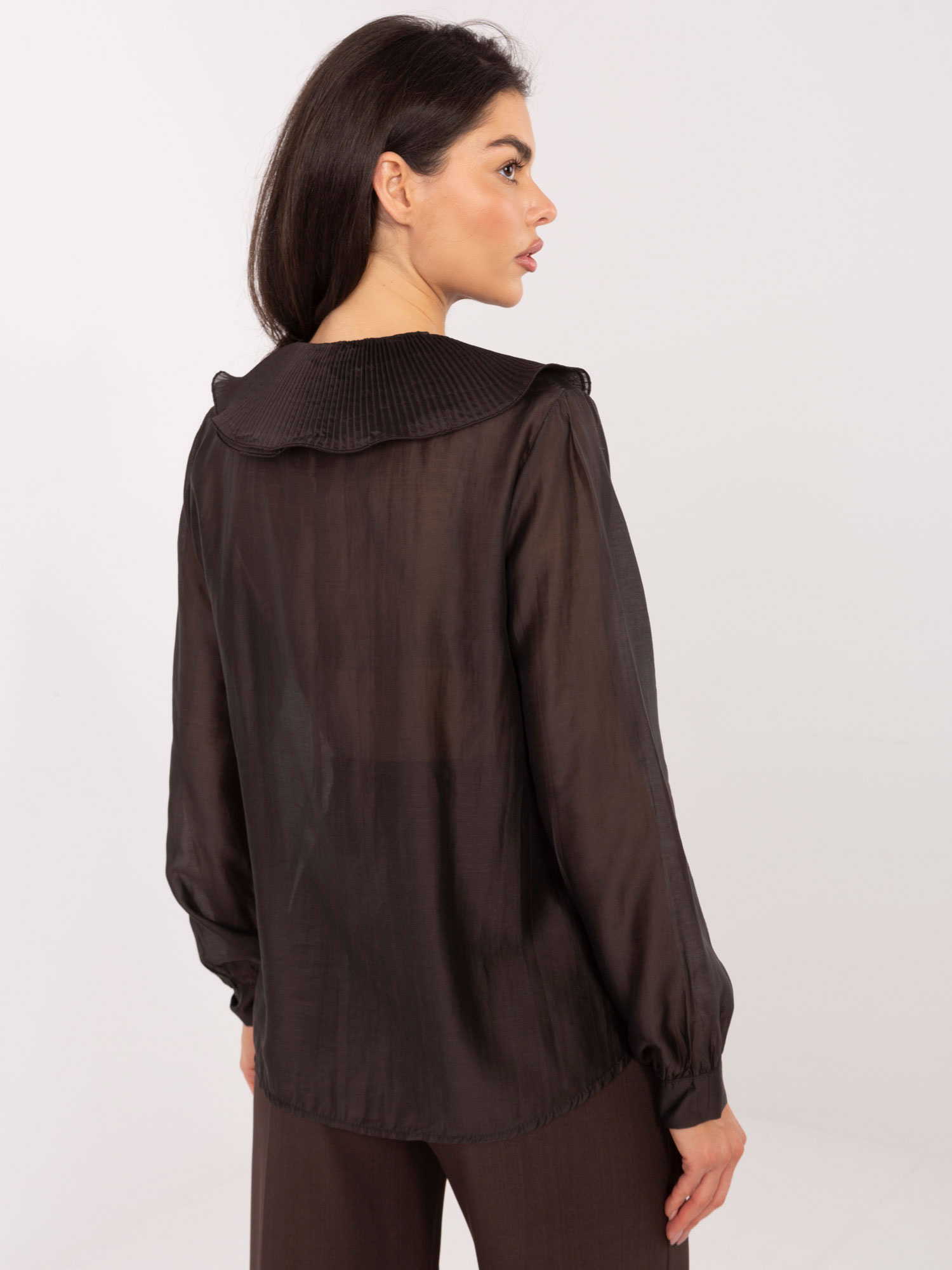 Czekoladowa rozpinana koszula z okrągłym dekoltem