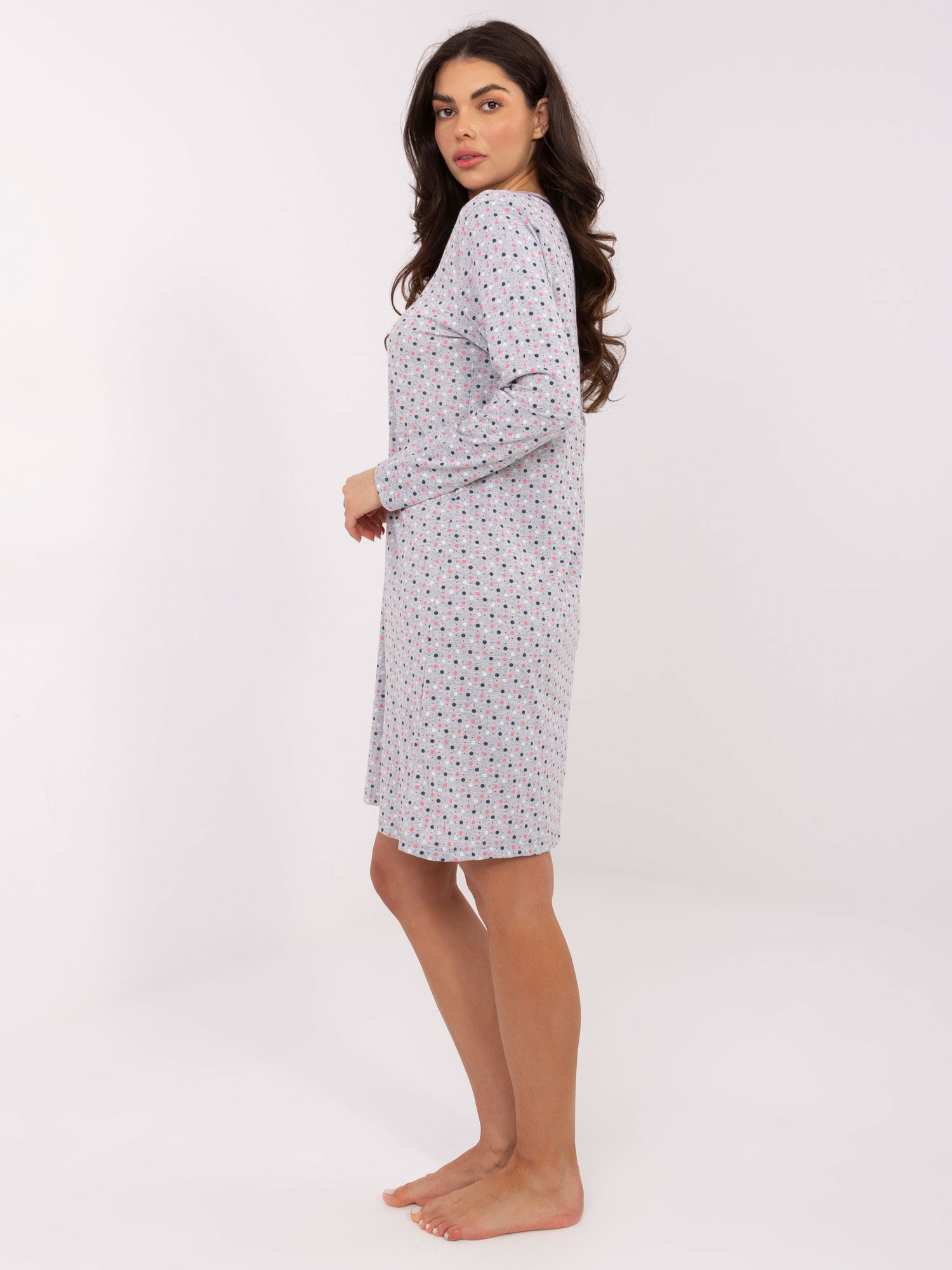 Szara luźna koszula nocna z kokardką .
