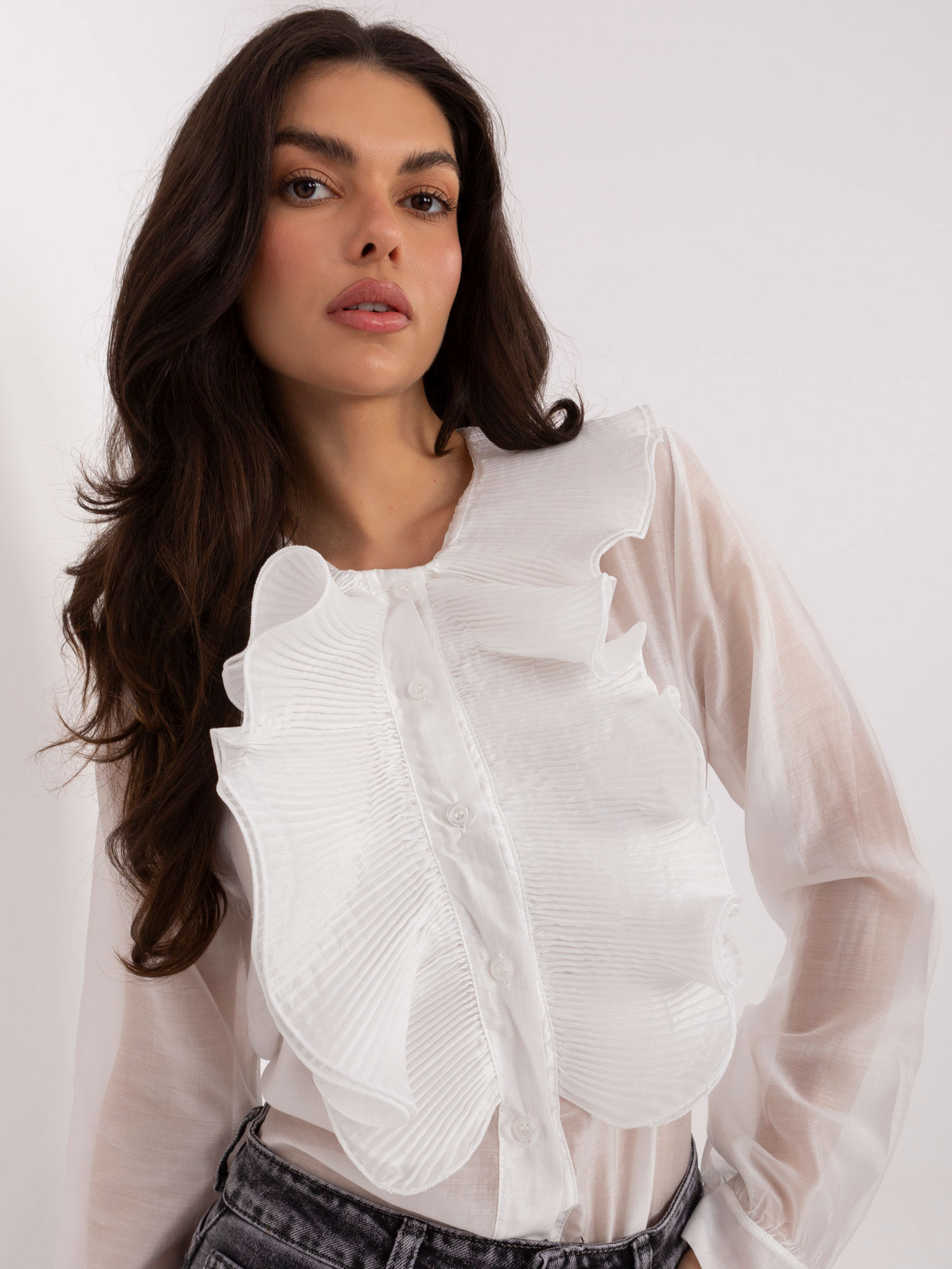 Biała elegancka koszula z plisowaniem