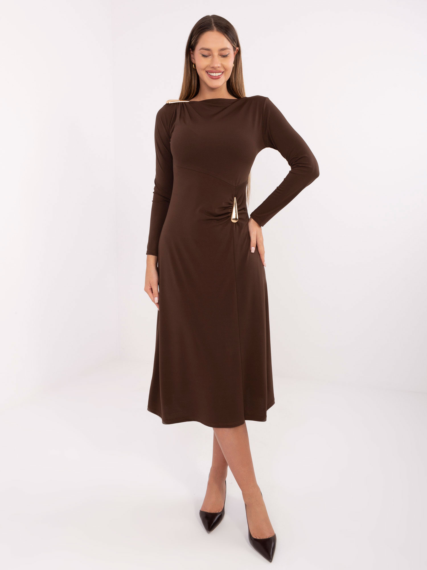 Wymiary sukienki w rozmiarze one size mierzone na płasko: szerokość pod pachami - 44 cm, długość całkowita - 126 cm, szerokość w biodrach - 52 cm, szerokość w talii - 34 cm, długość rękawa - 34 cm.