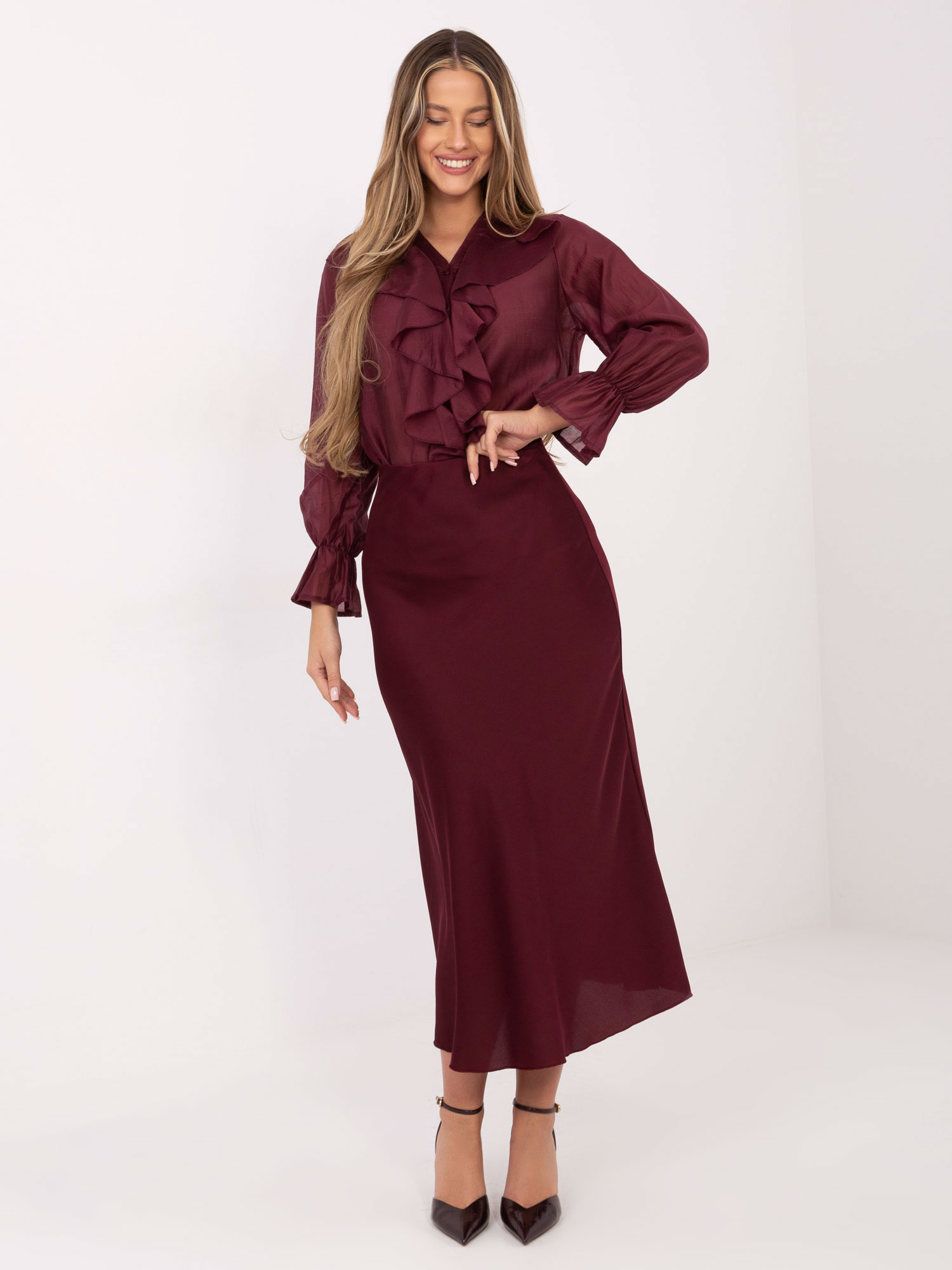 Wymiary koszuli w rozmiarze one size mierzone na płasko: szerokość pod pachami - 52 cm, długość całkowita - 65 cm, długość rękawa - 60 cm (od szwu), szerokość w biodrach - 59 cm.