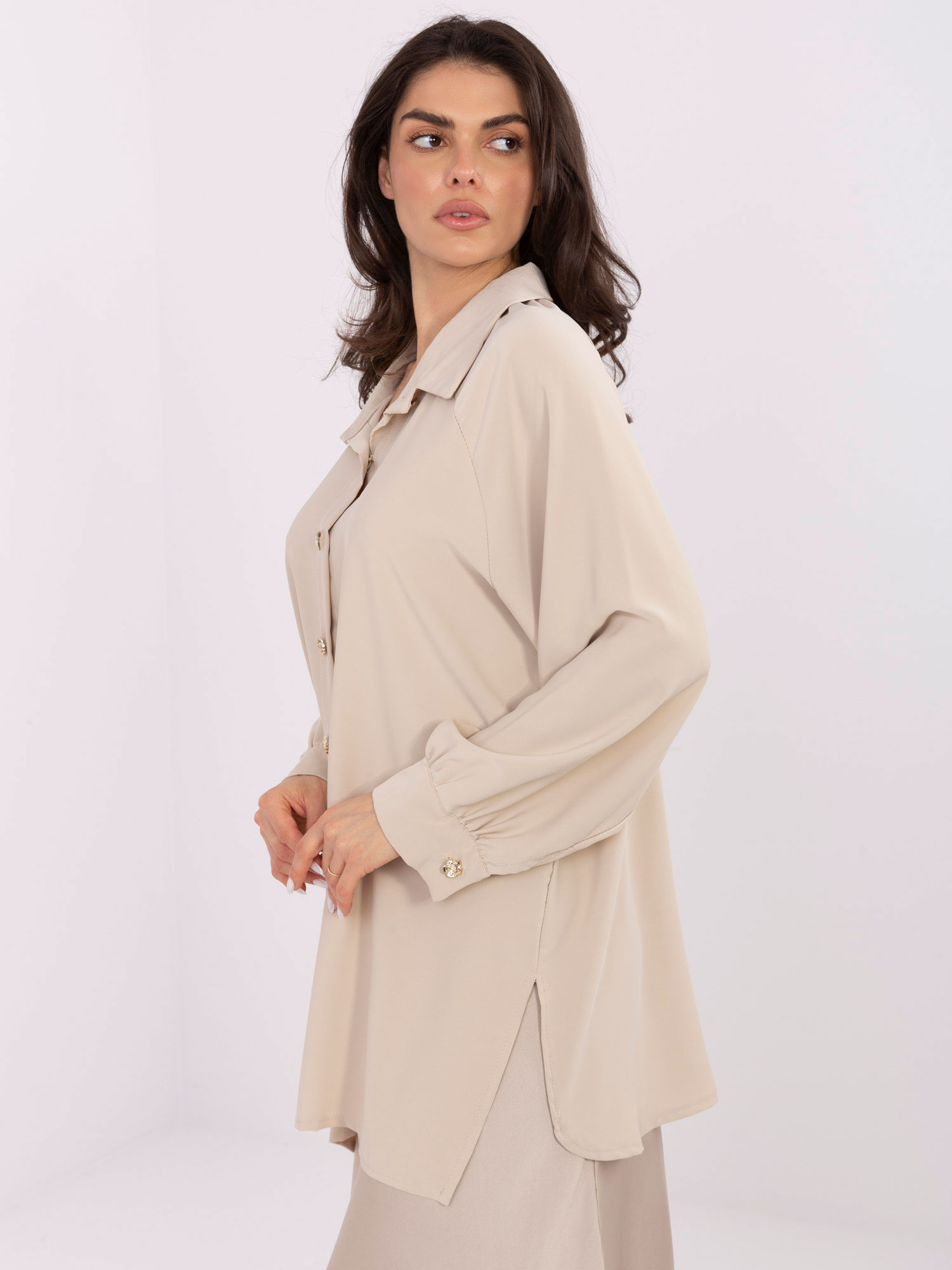 Wymiary koszuli w rozmiarze one size mierzone na płasko: szerokość pod pachami - 62 cm, długość całkowita - 82 cm, szerokość w biodrach - 70 cm, długość rękawa - 69 cm.