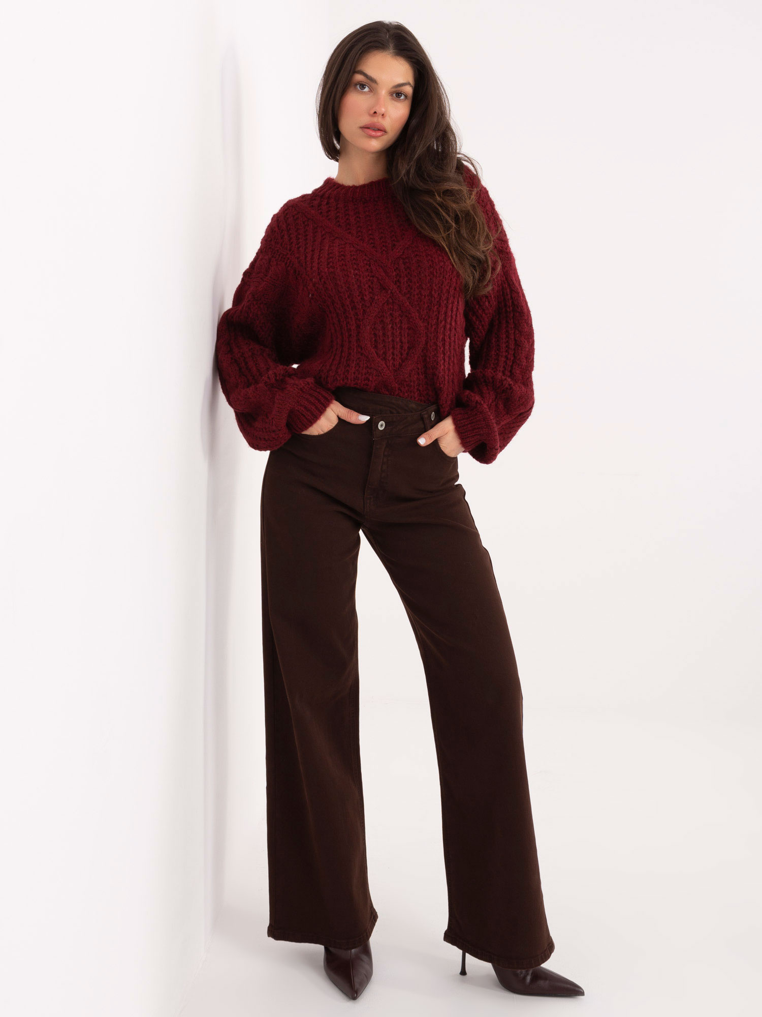 Wymiary swetra w rozmiarze one size: szerokość pod pachami - 64 cm, długość całkowita - 63 cm, długość rękawa - 57 cm (od szwu), szerokość w biodrach - 43 cm.