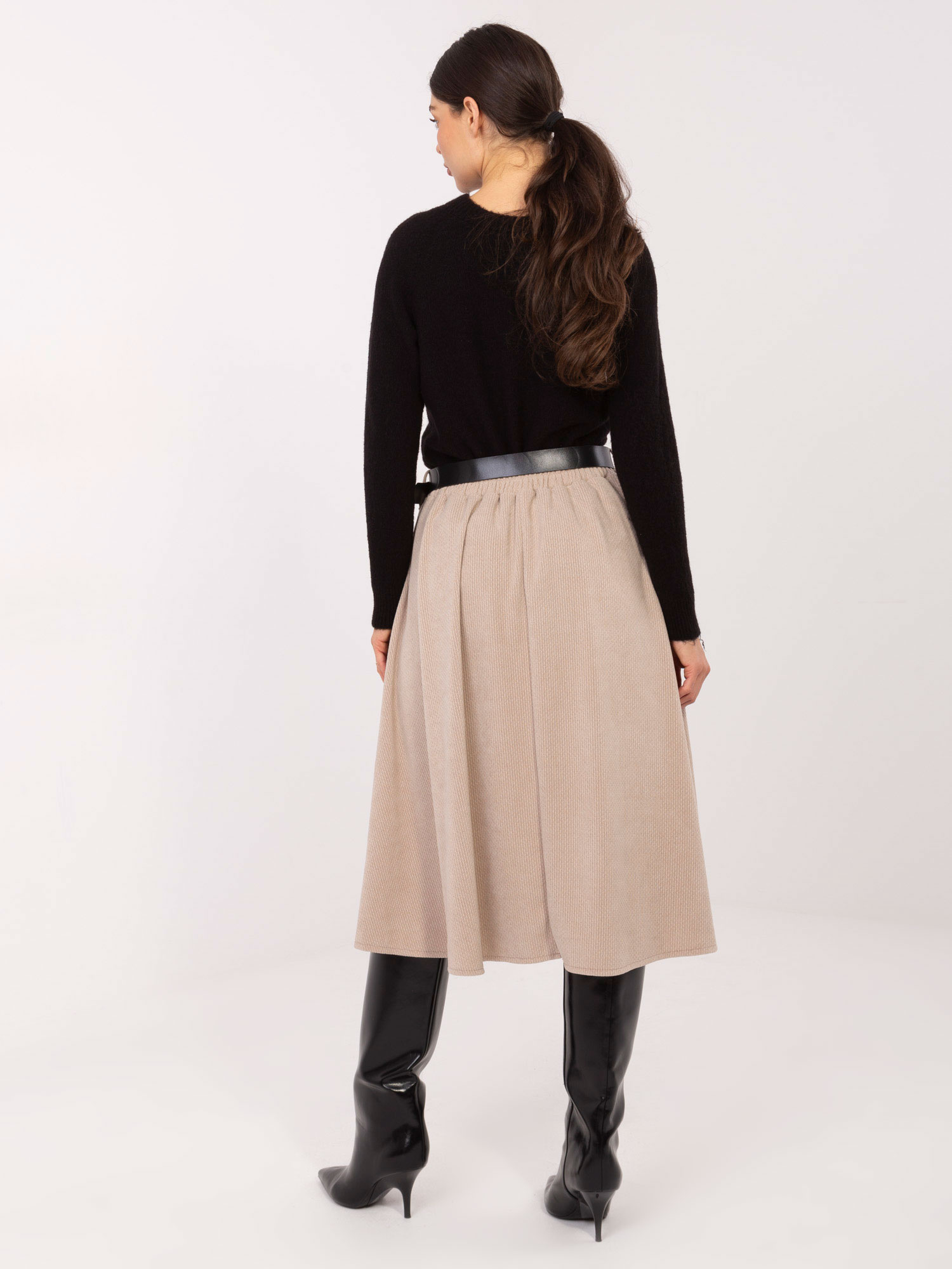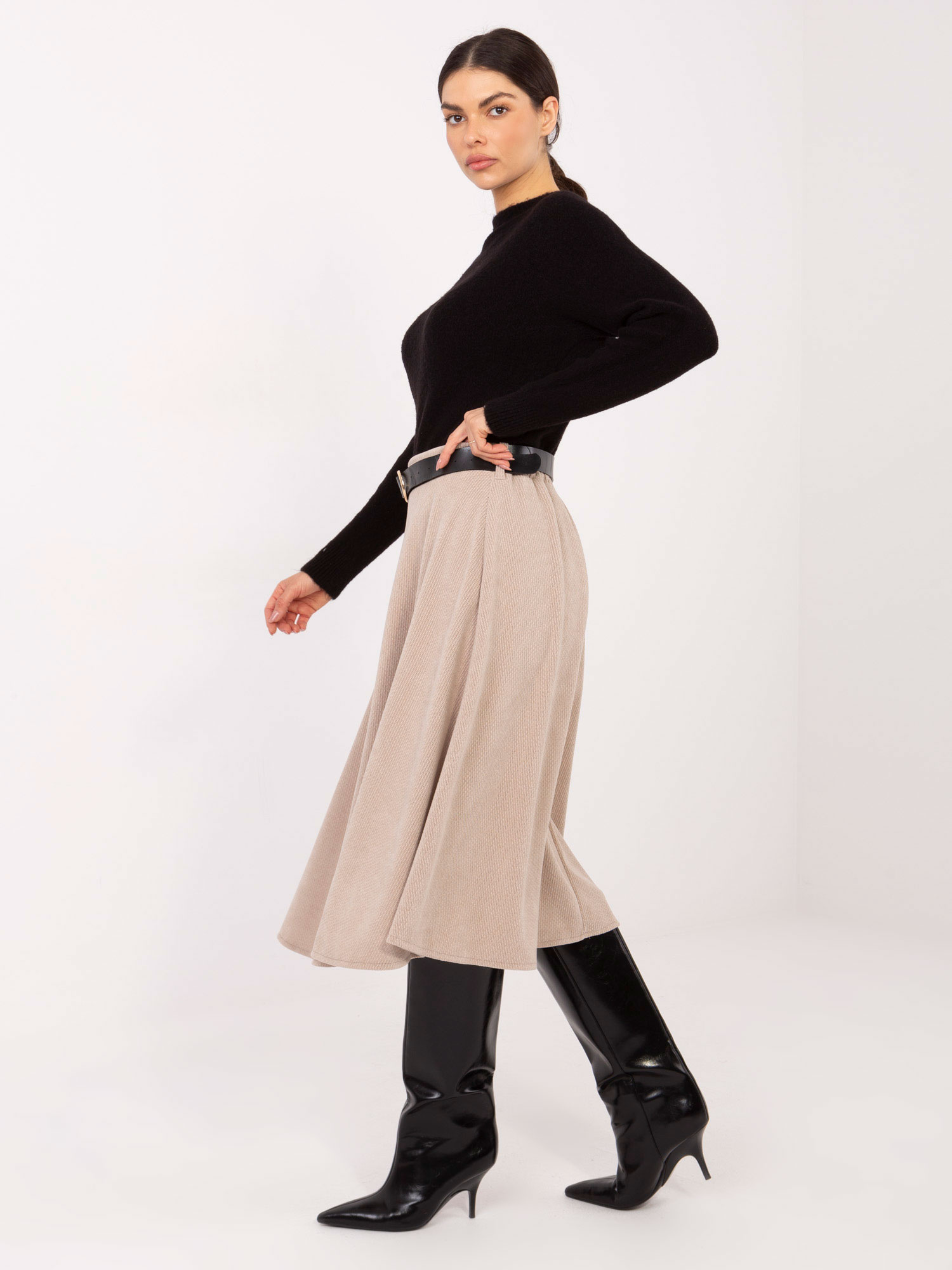 Beżowa rozkloszowana spódnica z dzianiny RUE PARIS .