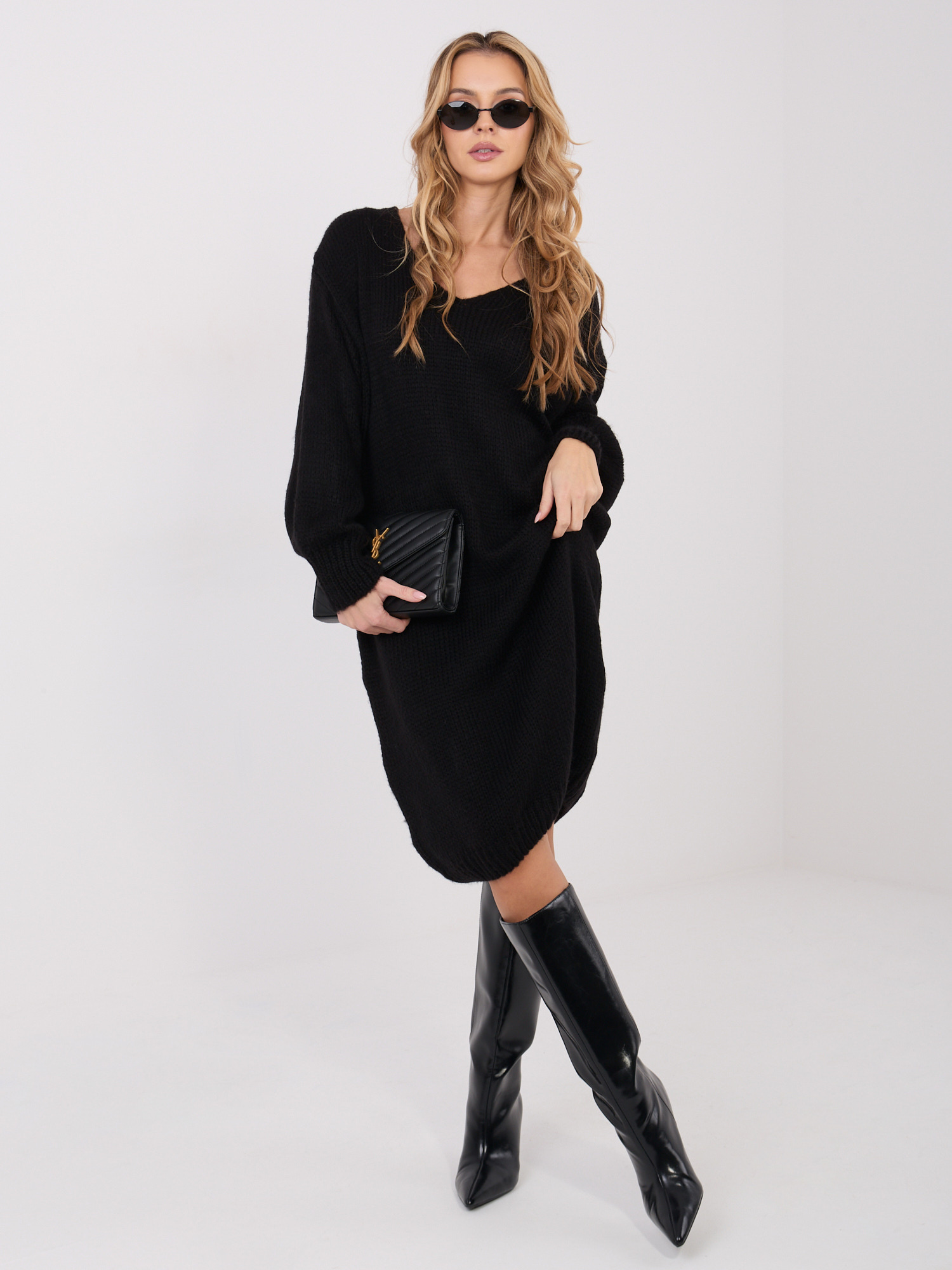 Czarna sweterkowa sukienka z bufiastym rękawem