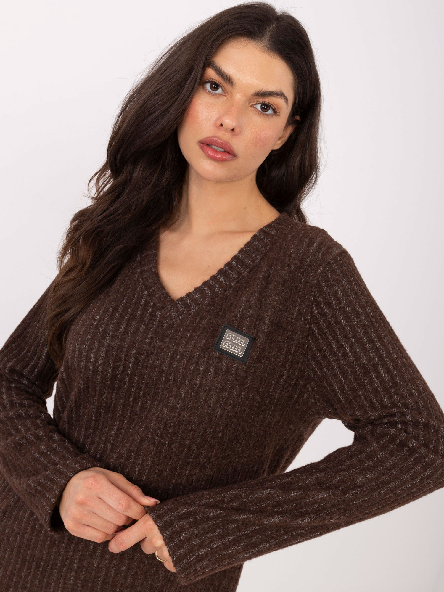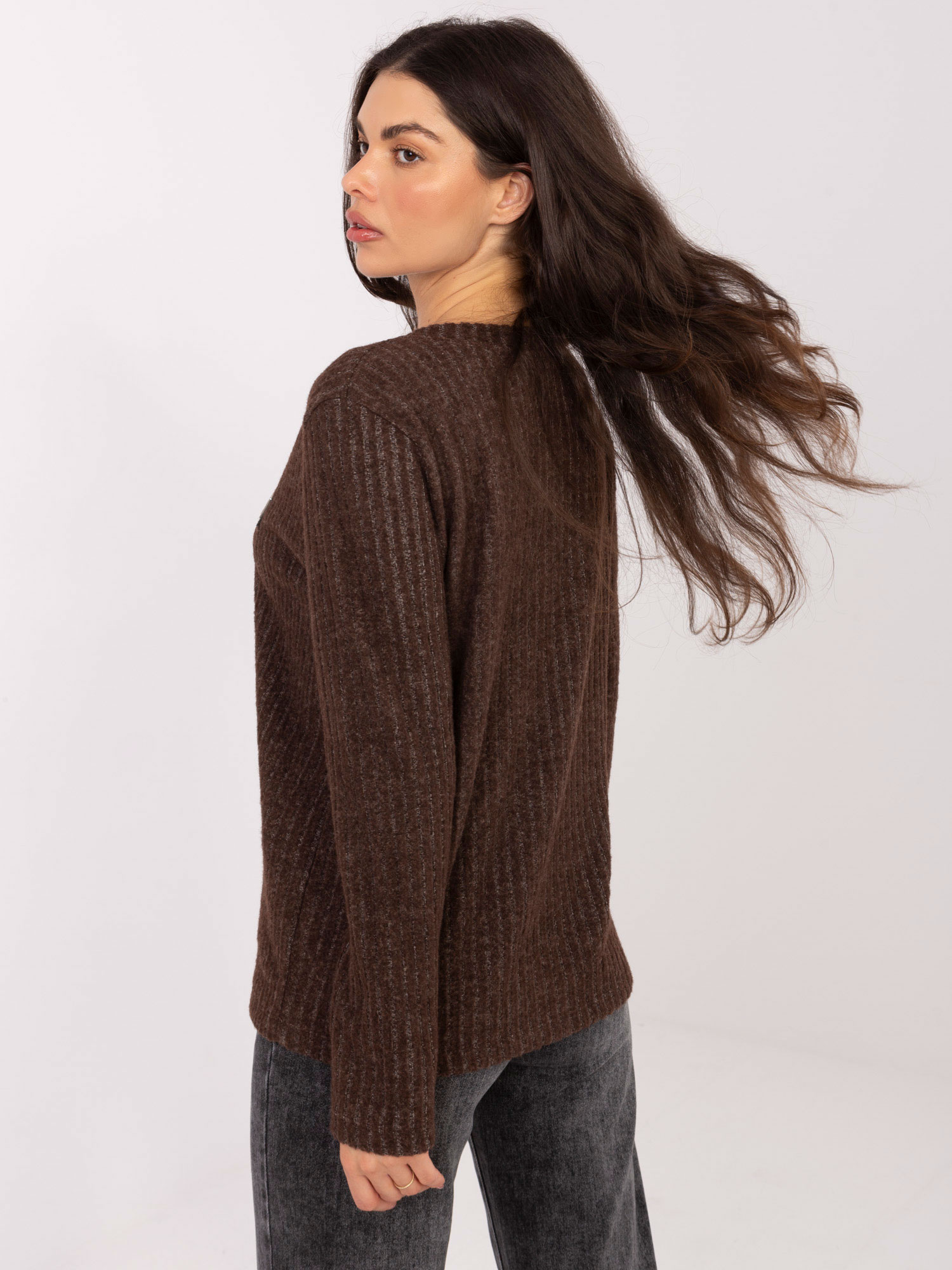 Brązowy damski sweter z miękkiej bawełny .