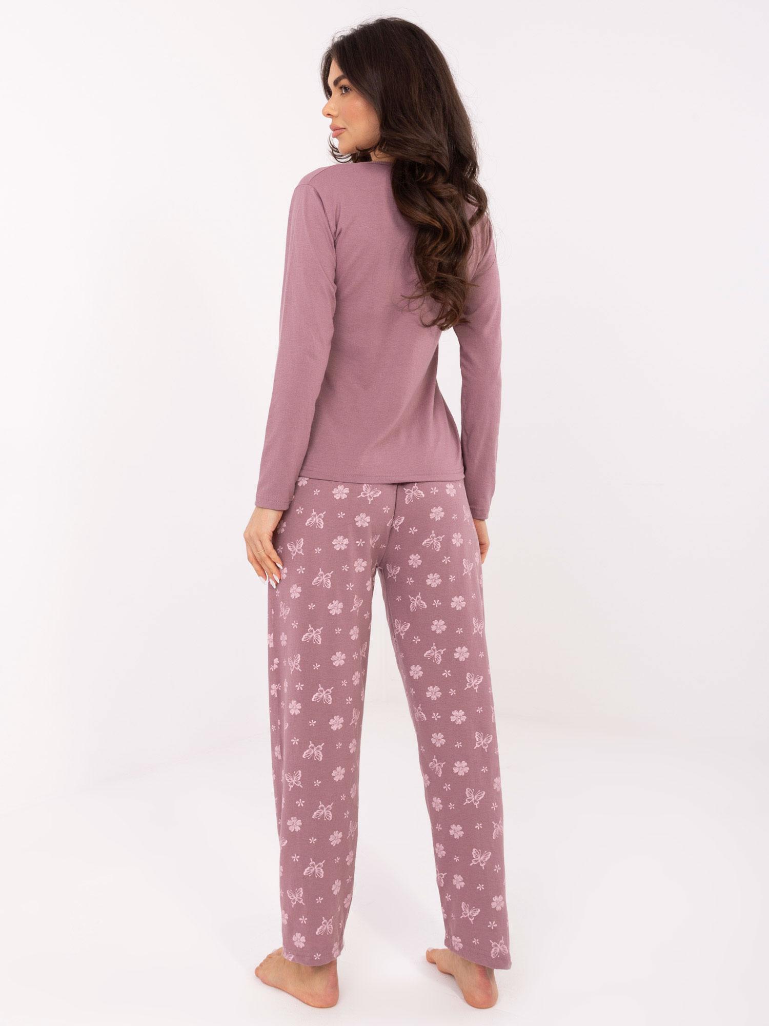 Brudnoróżowa dwuczęściowa piżama z nadrukiem.