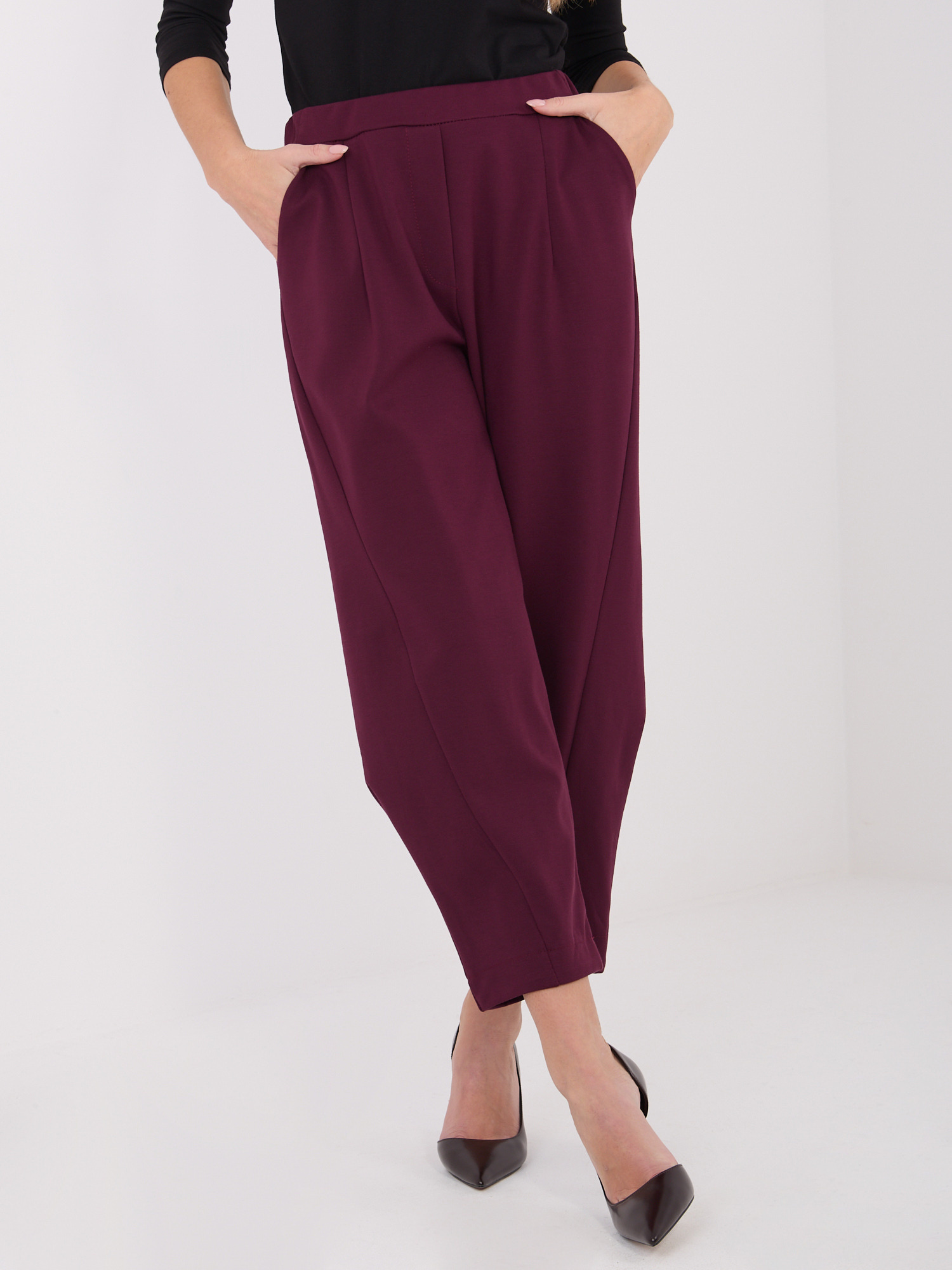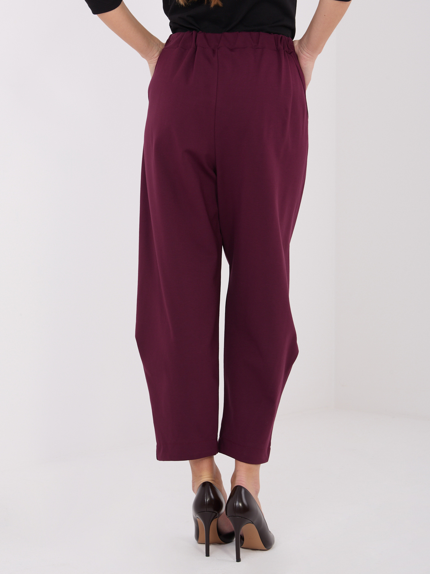 Burgundowe damskie spodnie z kieszeniami RUE PARIS .