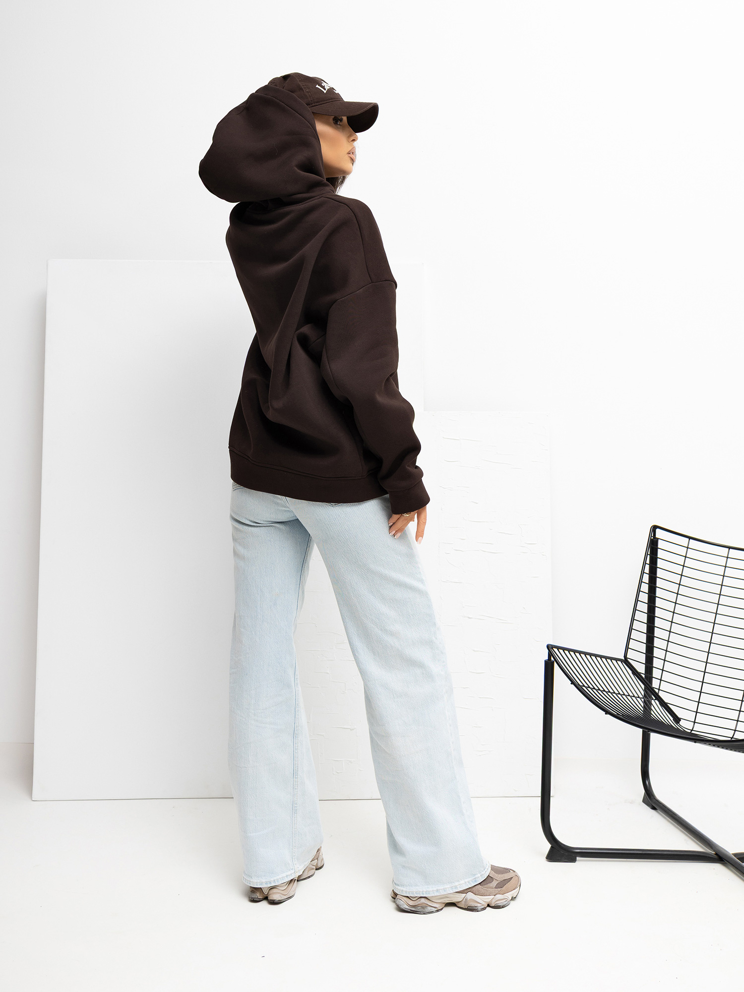 Czekoladowa bluza oversize z naszywką RUE PARIS .