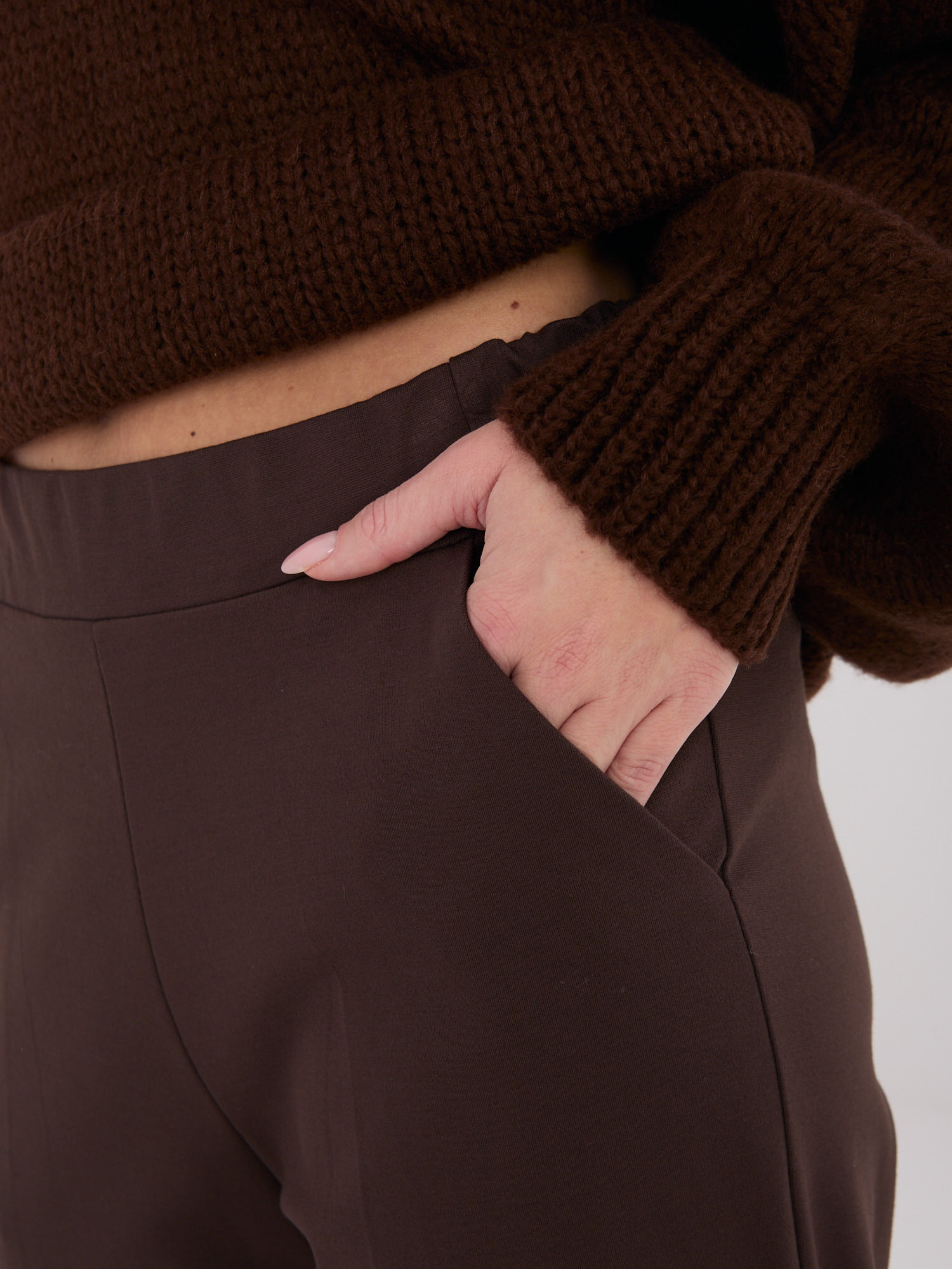 Ciemnobrązowe spodnie wide leg bez zapięcia RUE PARIS .
