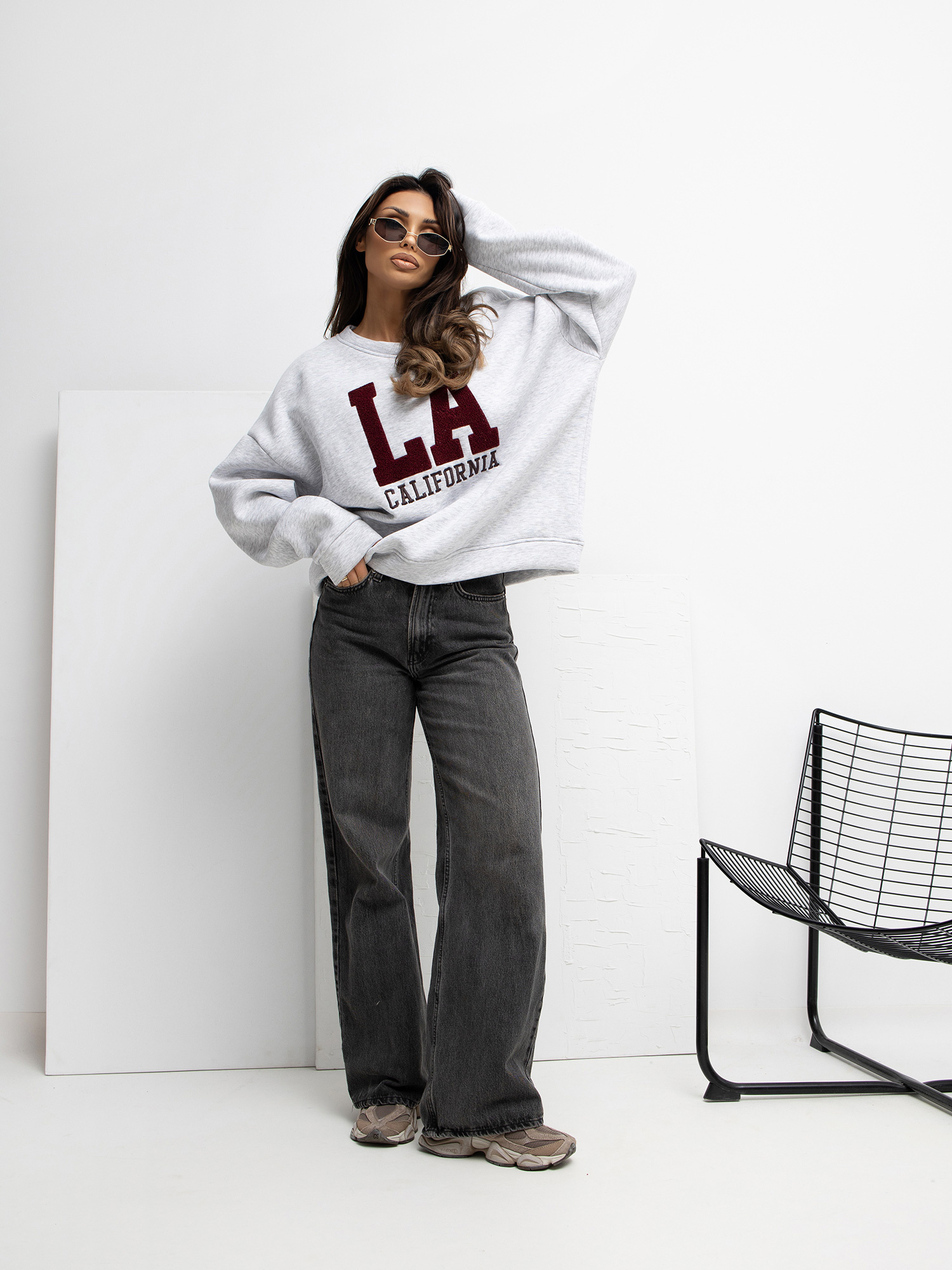 Jasnoszara bluza z okrągłym dekoltem RUE PARIS .