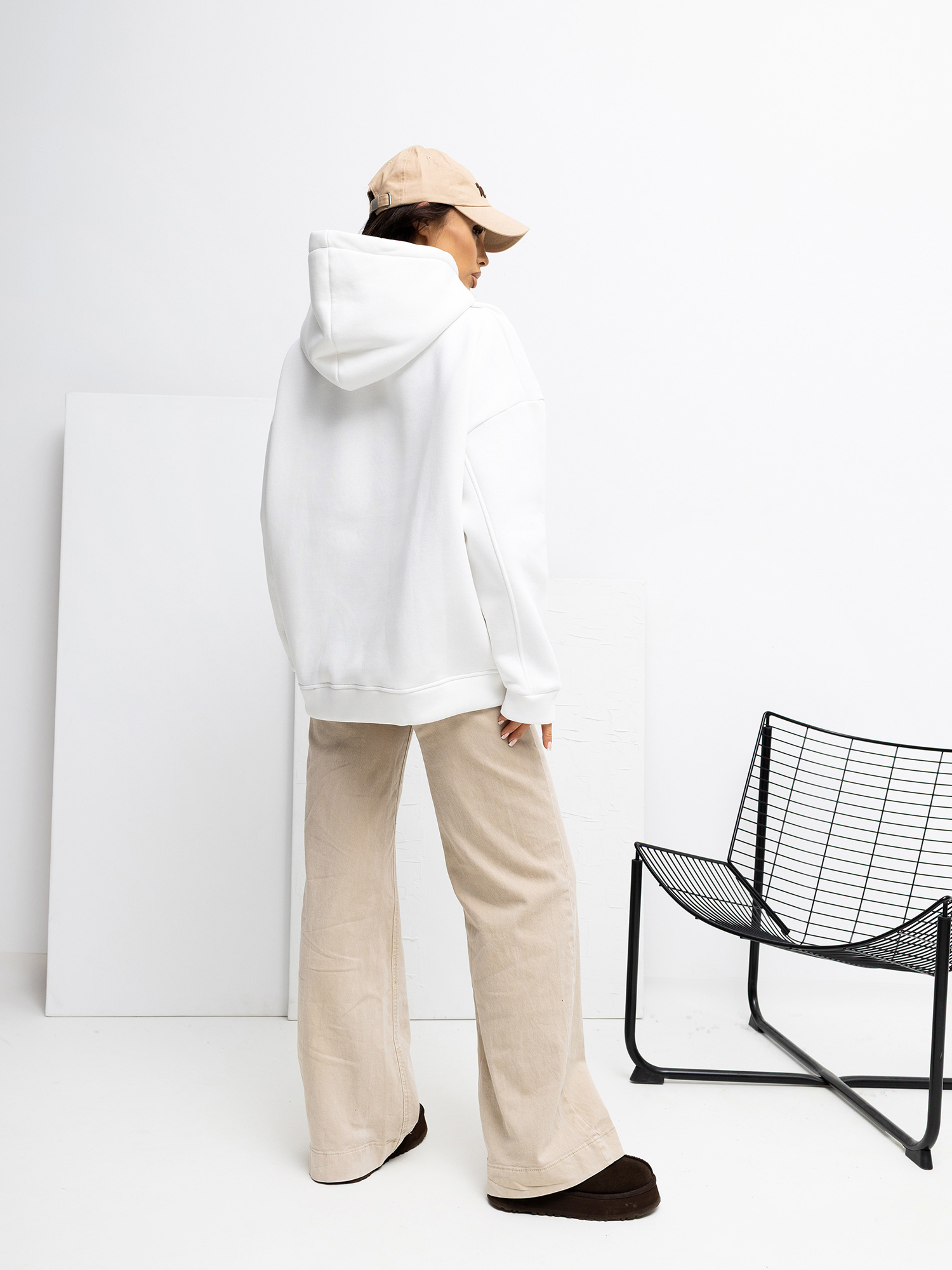 Wymiary bluzy w rozmiarze one size mierzone na płasko: szerokość pod pachami - 69 cm, długość całkowita - 70 cm, szerokość na dole - 59 cm, długość rękawa - 51 cm (od szwu).