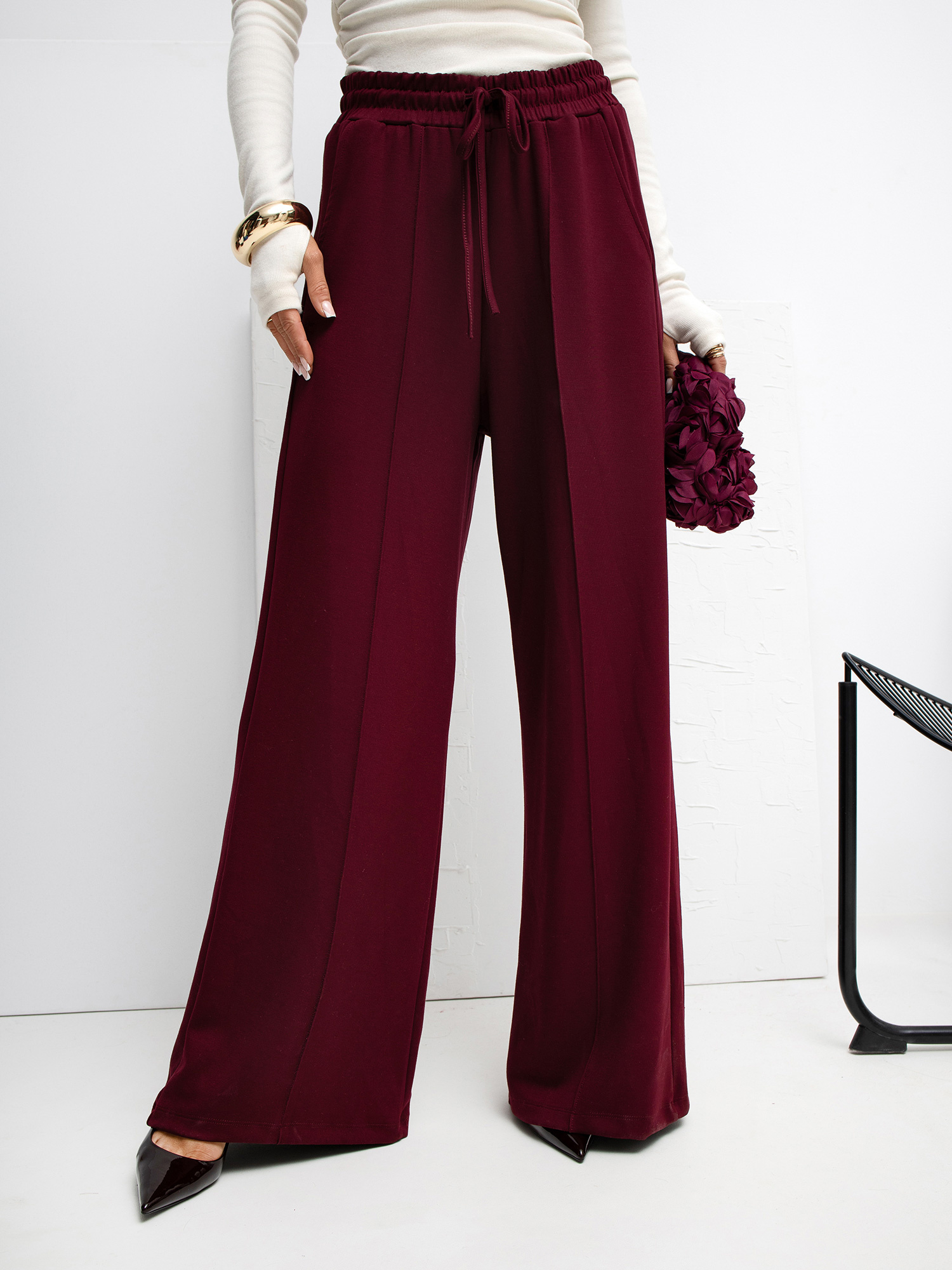 Bordowe spodnie palazzo z wiązaniem RUE PARIS .