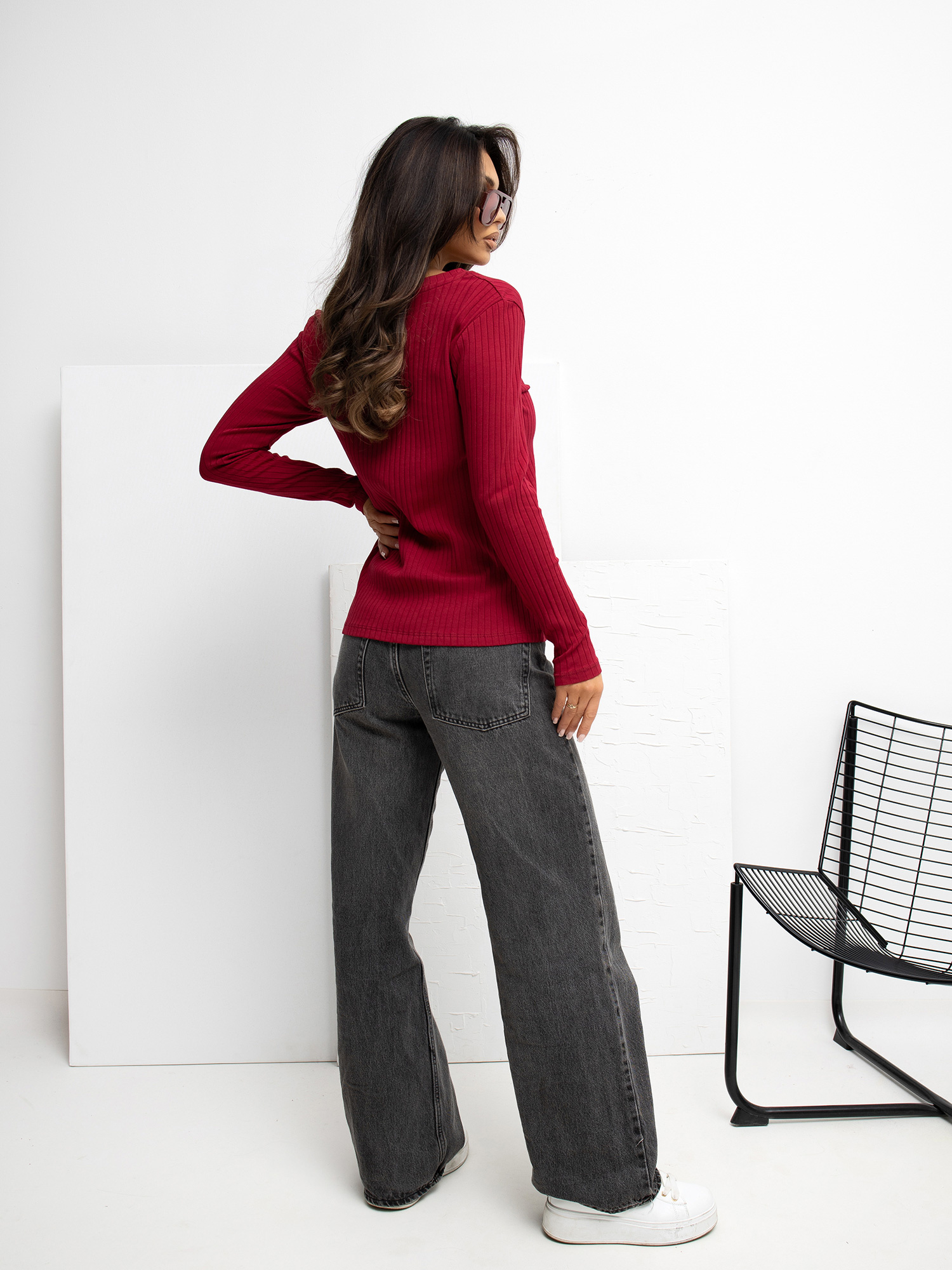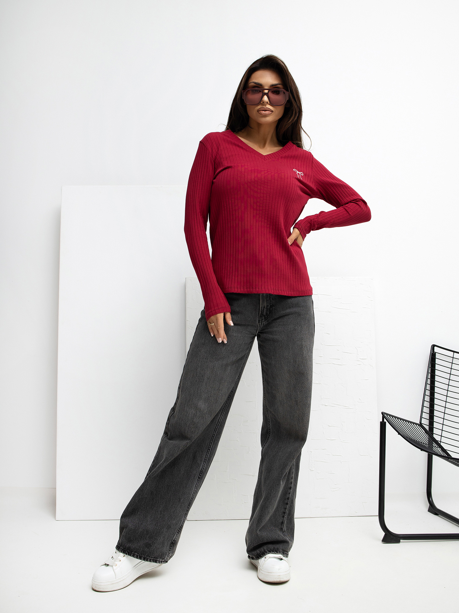 Bordowa bawełniana bluzka z kokardką RUE PARIS .