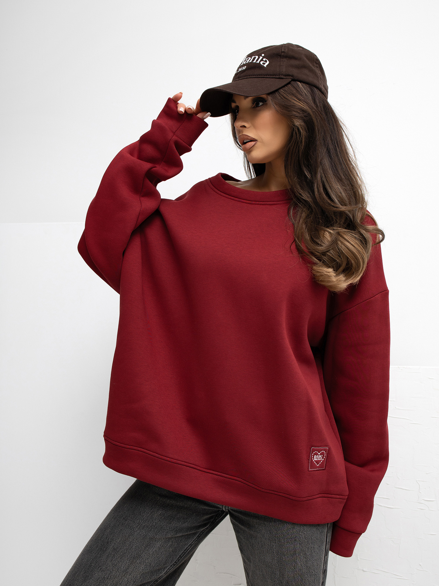 Bordowa ocieplana bluza bez kaptura RUE PARIS .