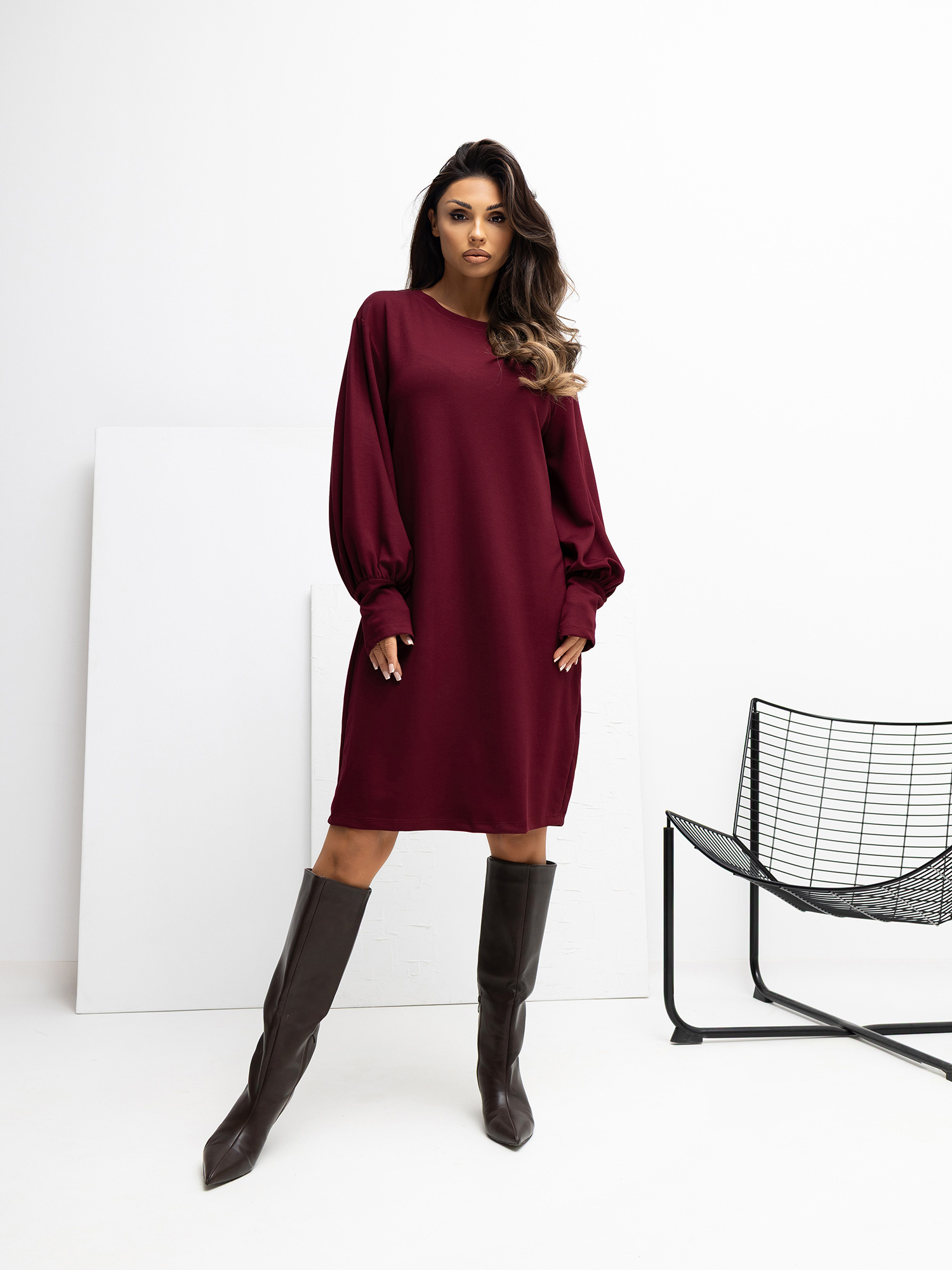 Bordowa sukienka basic z miękkiej tkaniny RUE PARIS .