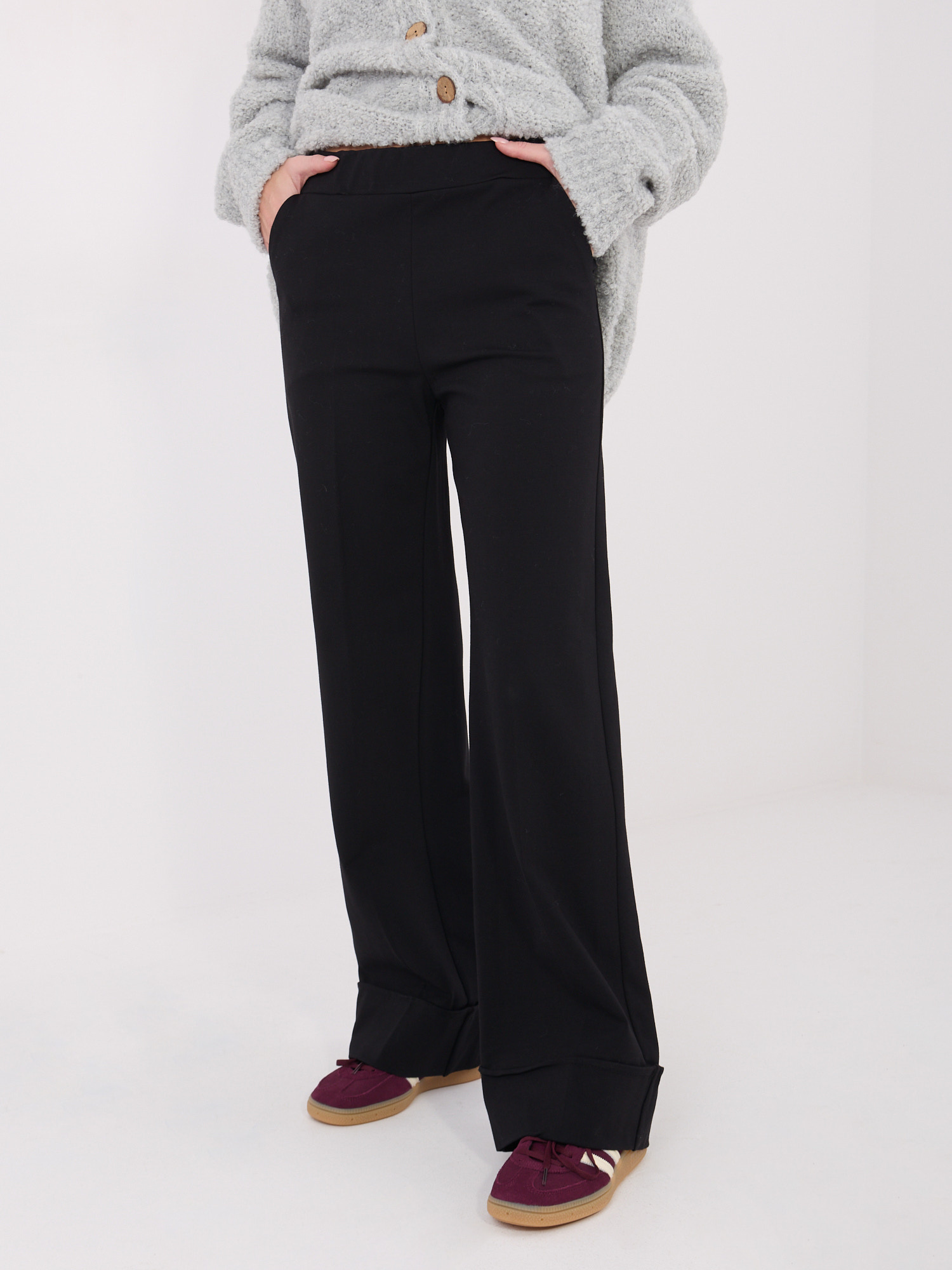 Wymiary spodni w rozmiarze S/M: szerokość w pasie - 34 cm (na płasko), szerokość w pasie - 56 cm (po rozciągnięciu), szerokość w biodrach - 46 cm, wysokość stanu - 31 cm, długość całkowita -107 cm.