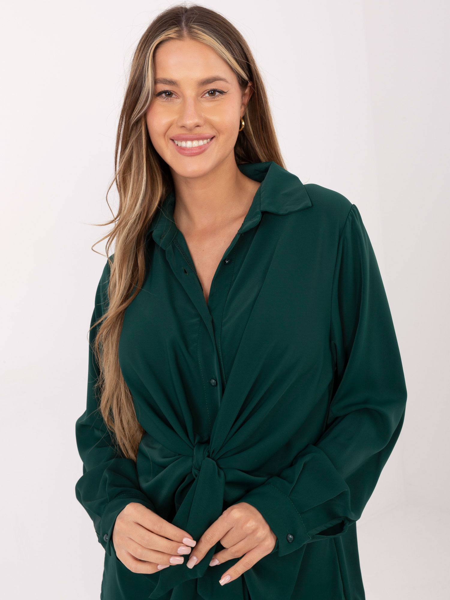 Wymiary koszuli w rozmiarze one size mierzone na płasko: szerokość pod pachami - 55 cm, długość całkowita - 69 cm, długość rękawa - 64 cm (od szwu), szerokość w biodrach - 62 cm.