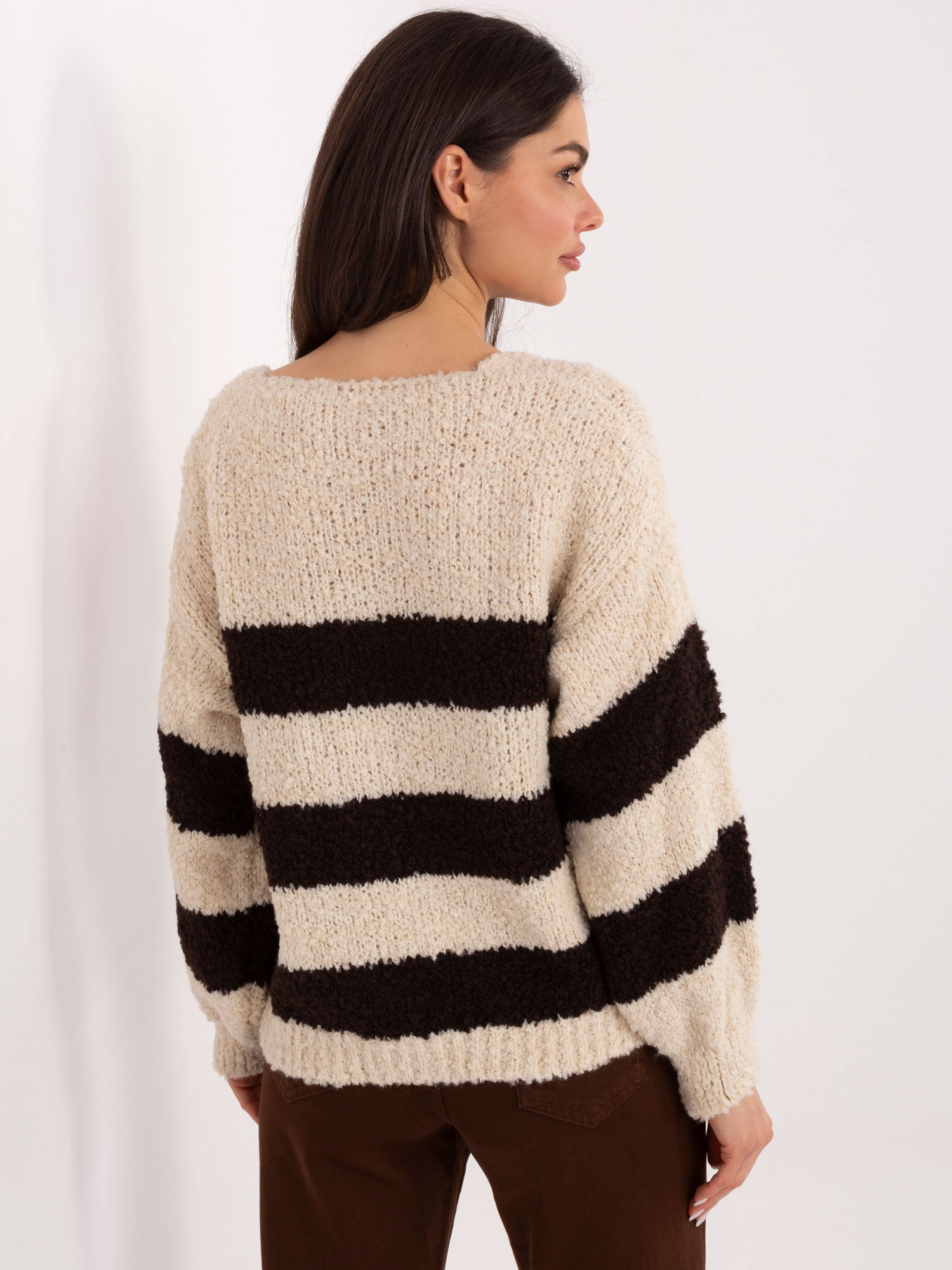 Jasnobeżowo-brązowy sweter oversize z dekoltem V