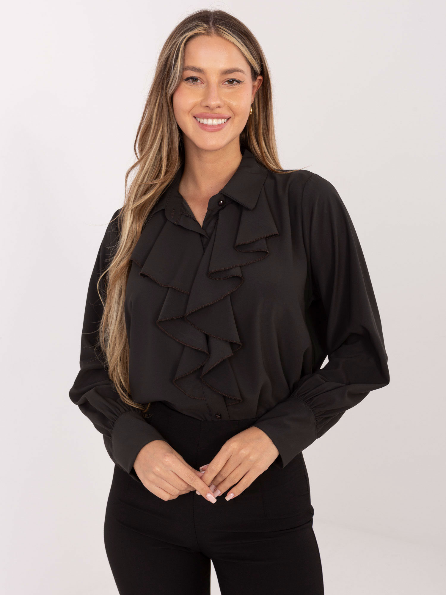Czekoladowa rozpinana koszula z kołnierzykiem