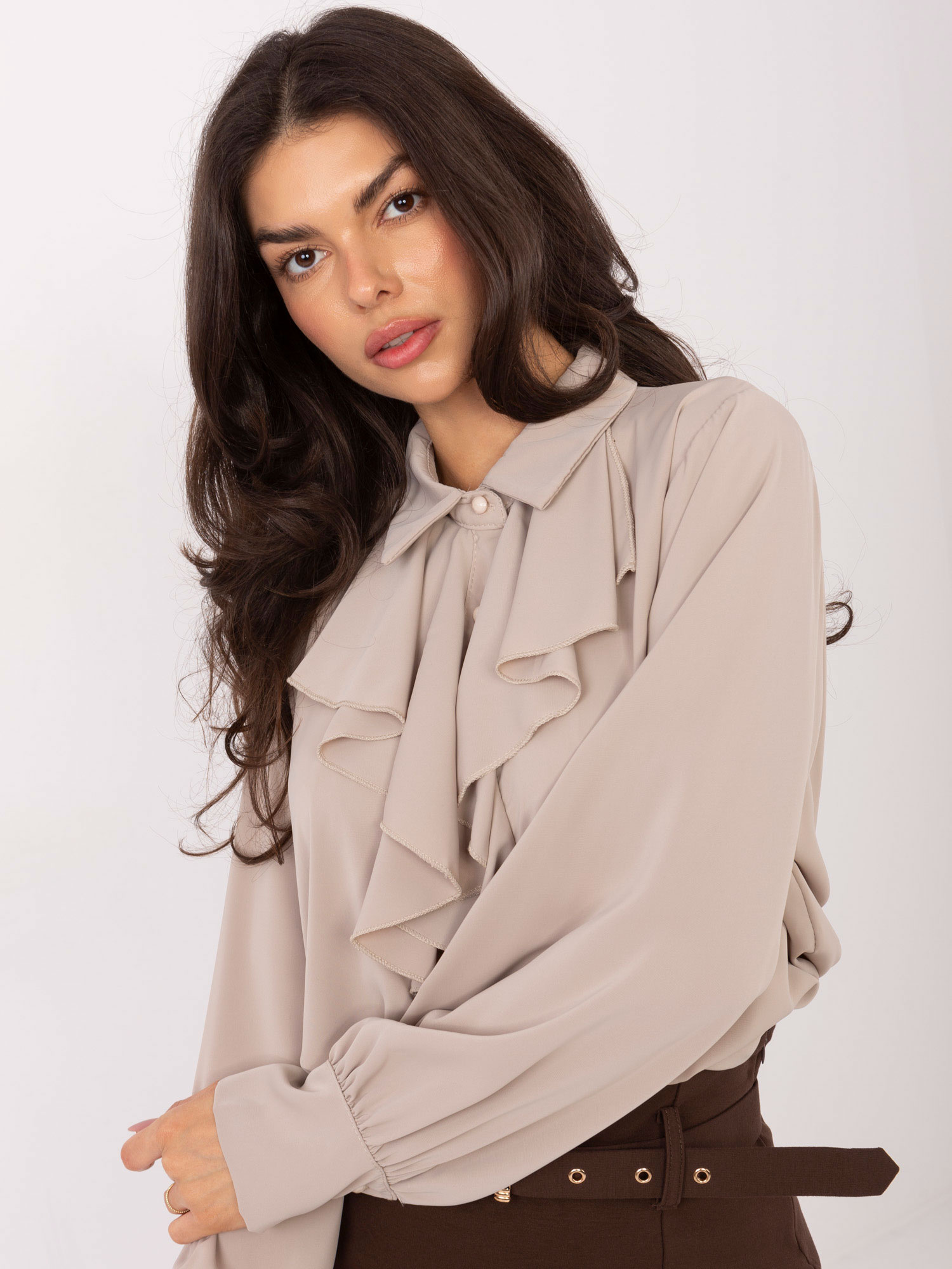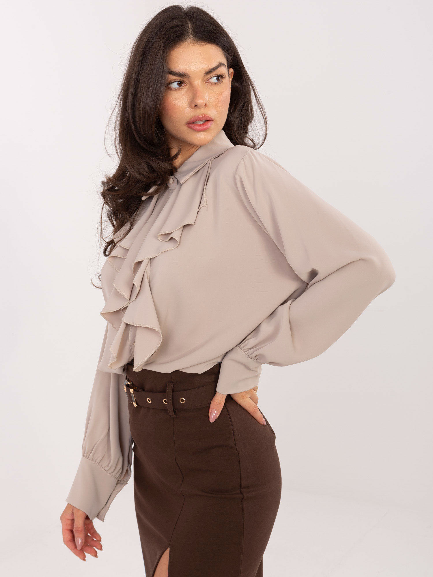 Wymiary koszuli w rozmiarze one size mierzone na płasko: szerokość pod pachami - 64 cm, długość całkowita - 69 cm, długość rękawa - 62 cm (od szwu), szerokość w biodrach - 72 cm.