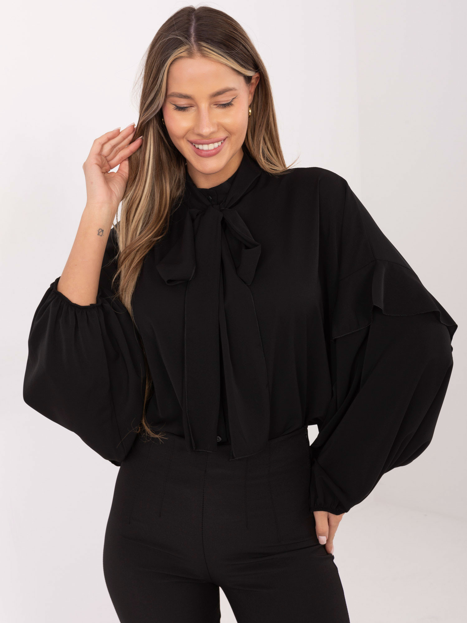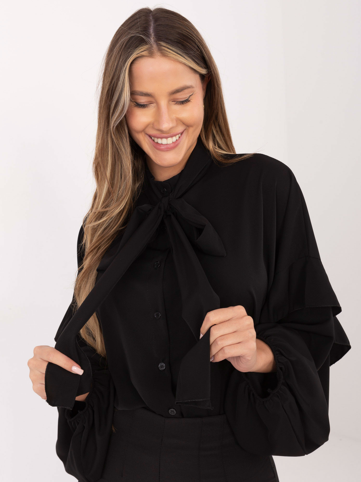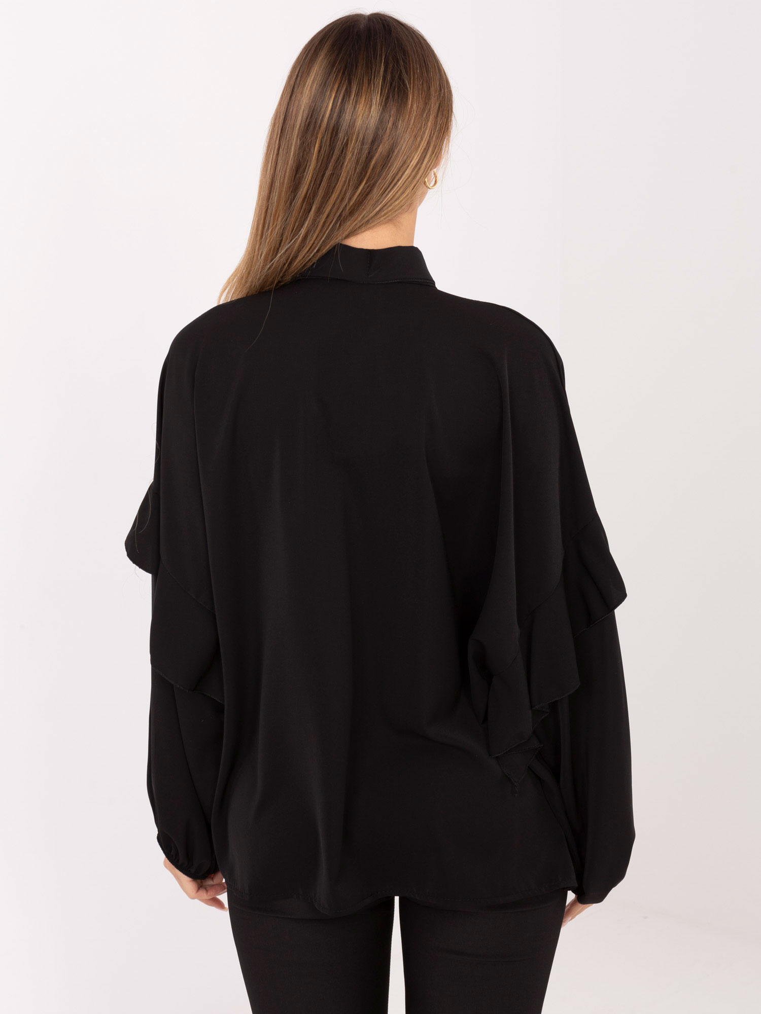 Czarna rozpinana koszula z bufiastym rękawem