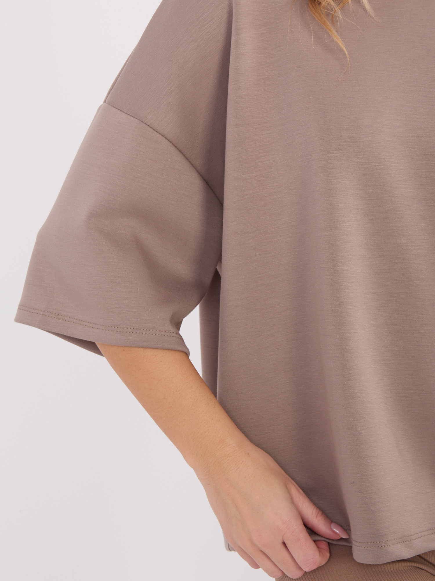 Ciemnobeżowa bluzka basic z rękawem 3/4