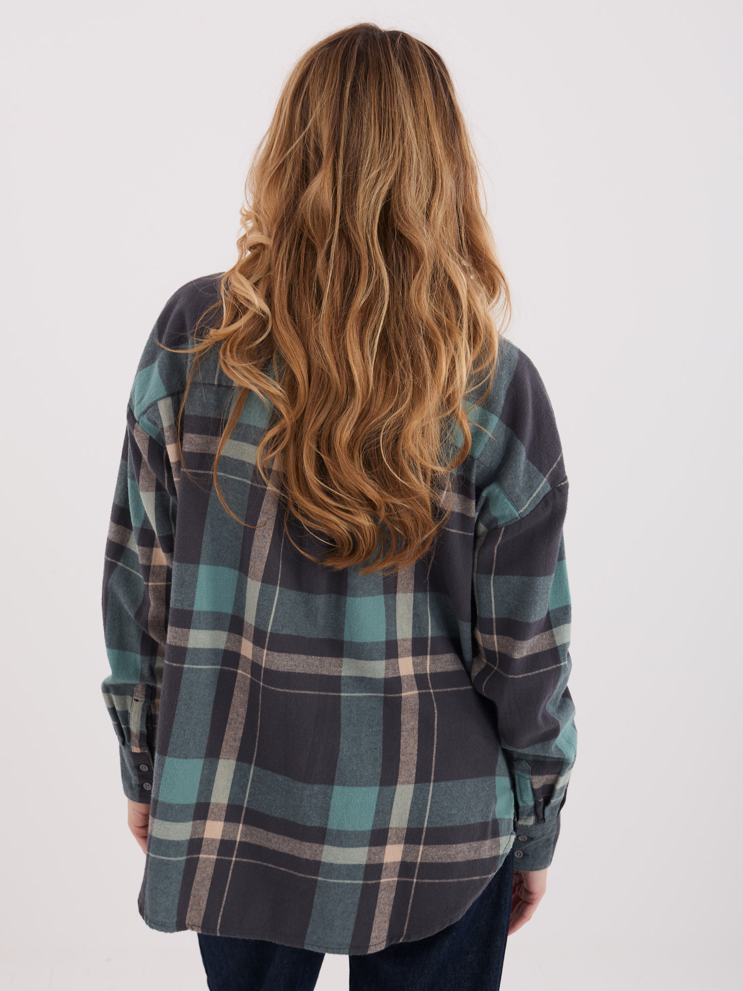 Jasnoszaro-niebieska damska koszula w kratę STITCH & SOUL .