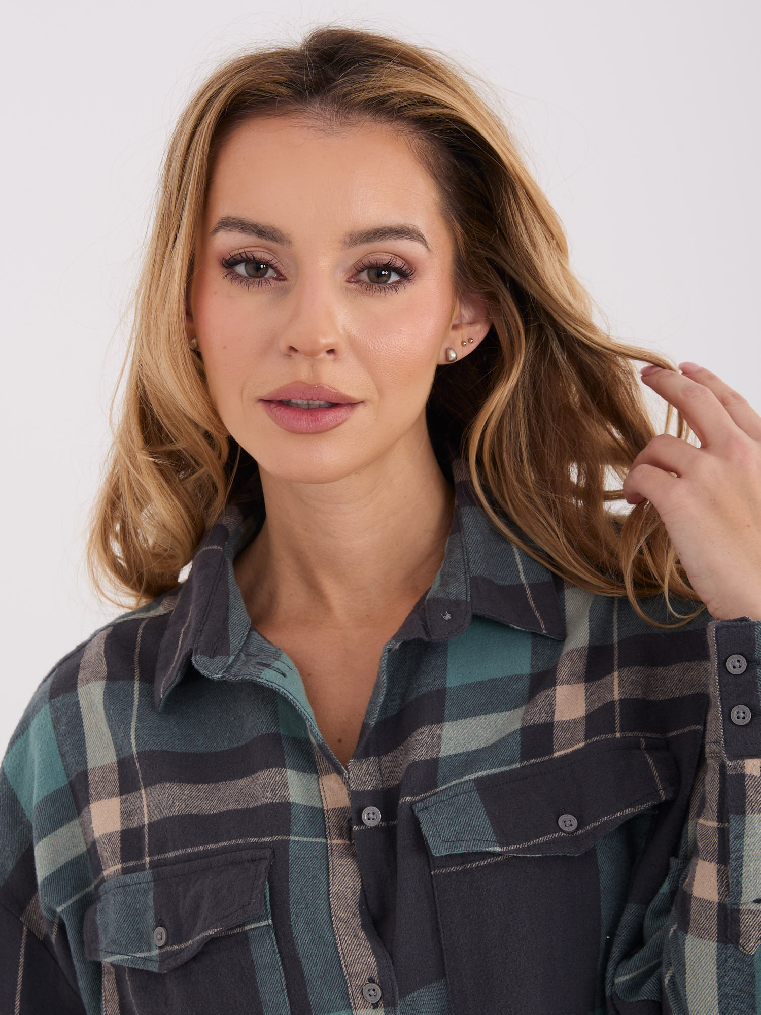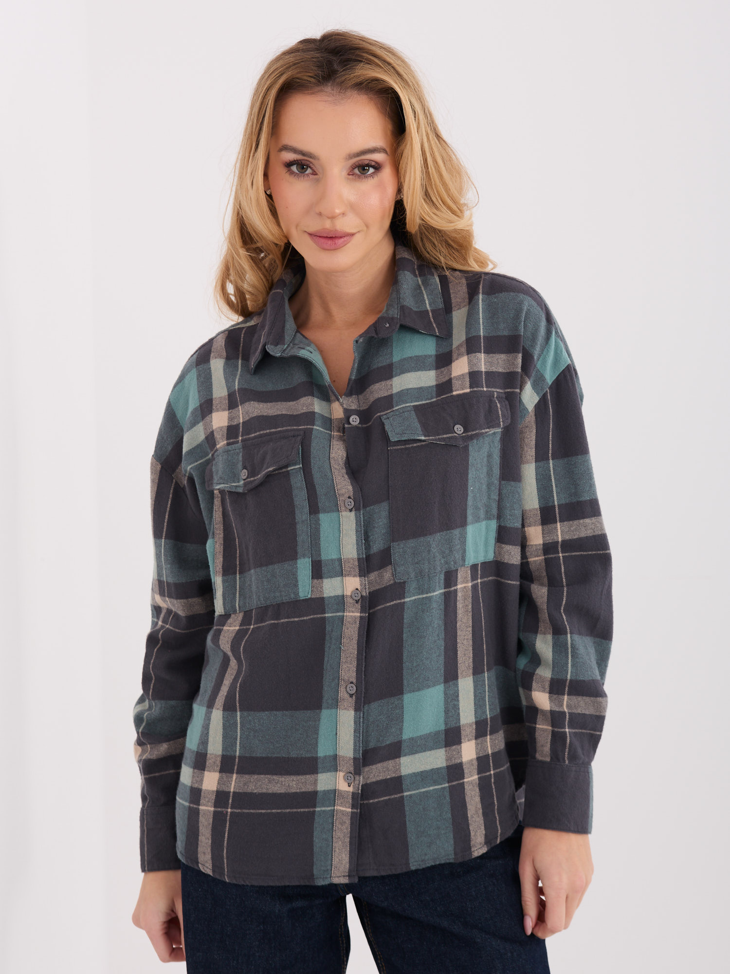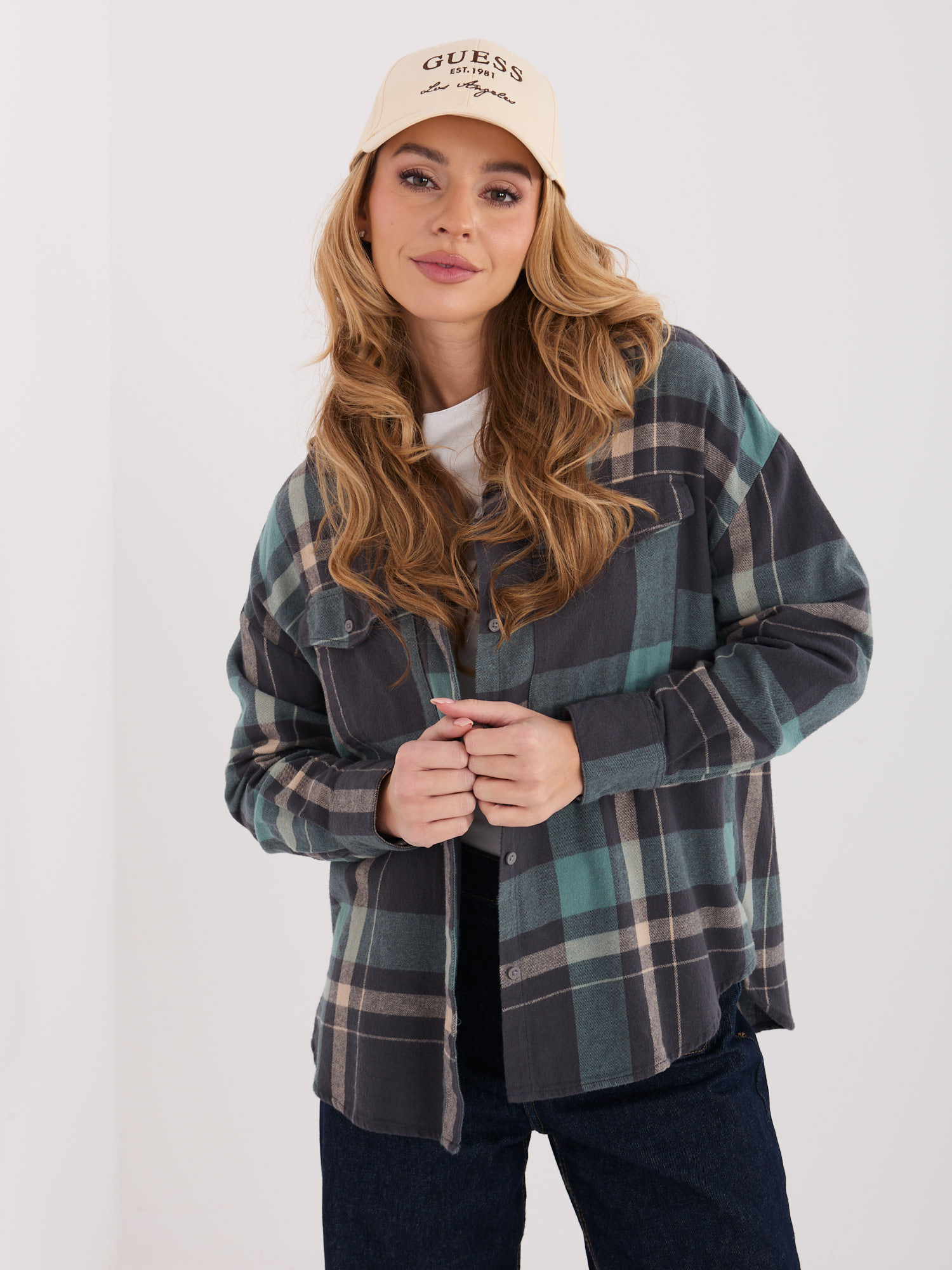 Jasnoszaro-niebieska damska koszula w kratę STITCH & SOUL
