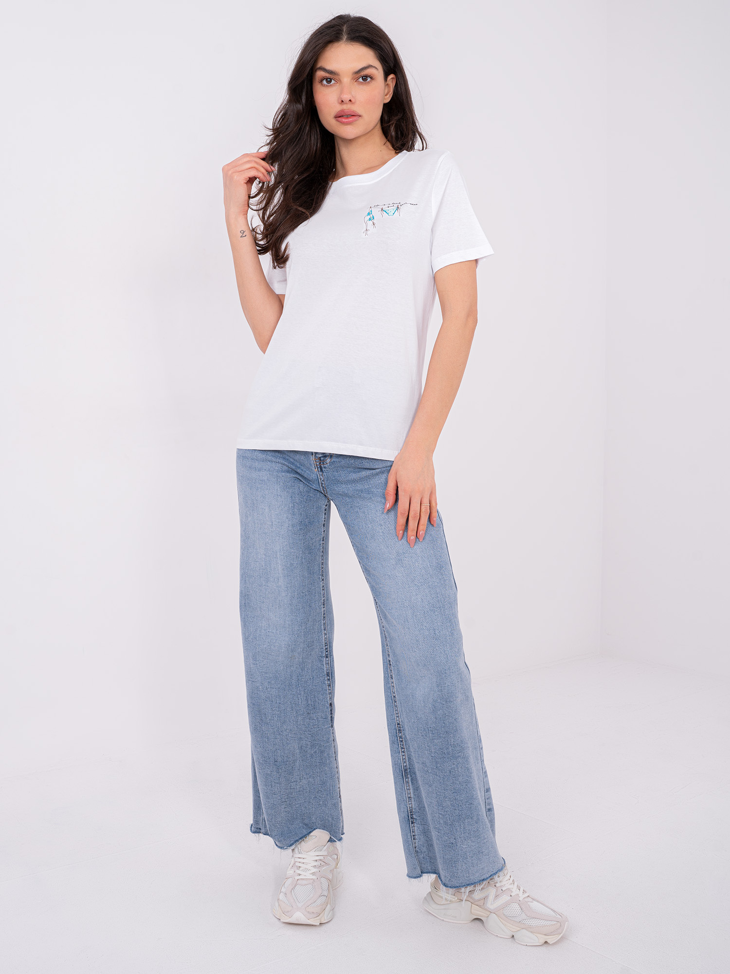 Biały bawełniany t-shrt z haftem .