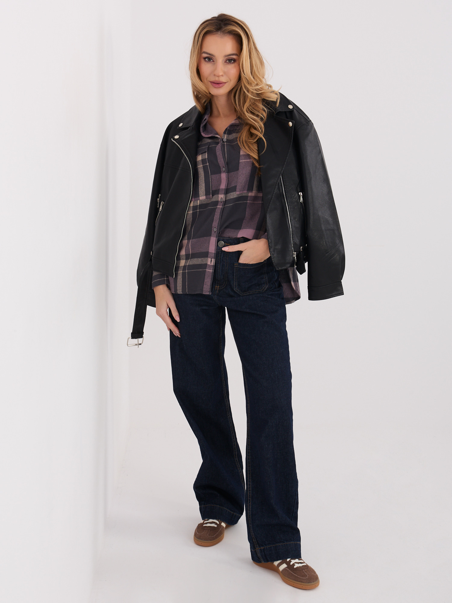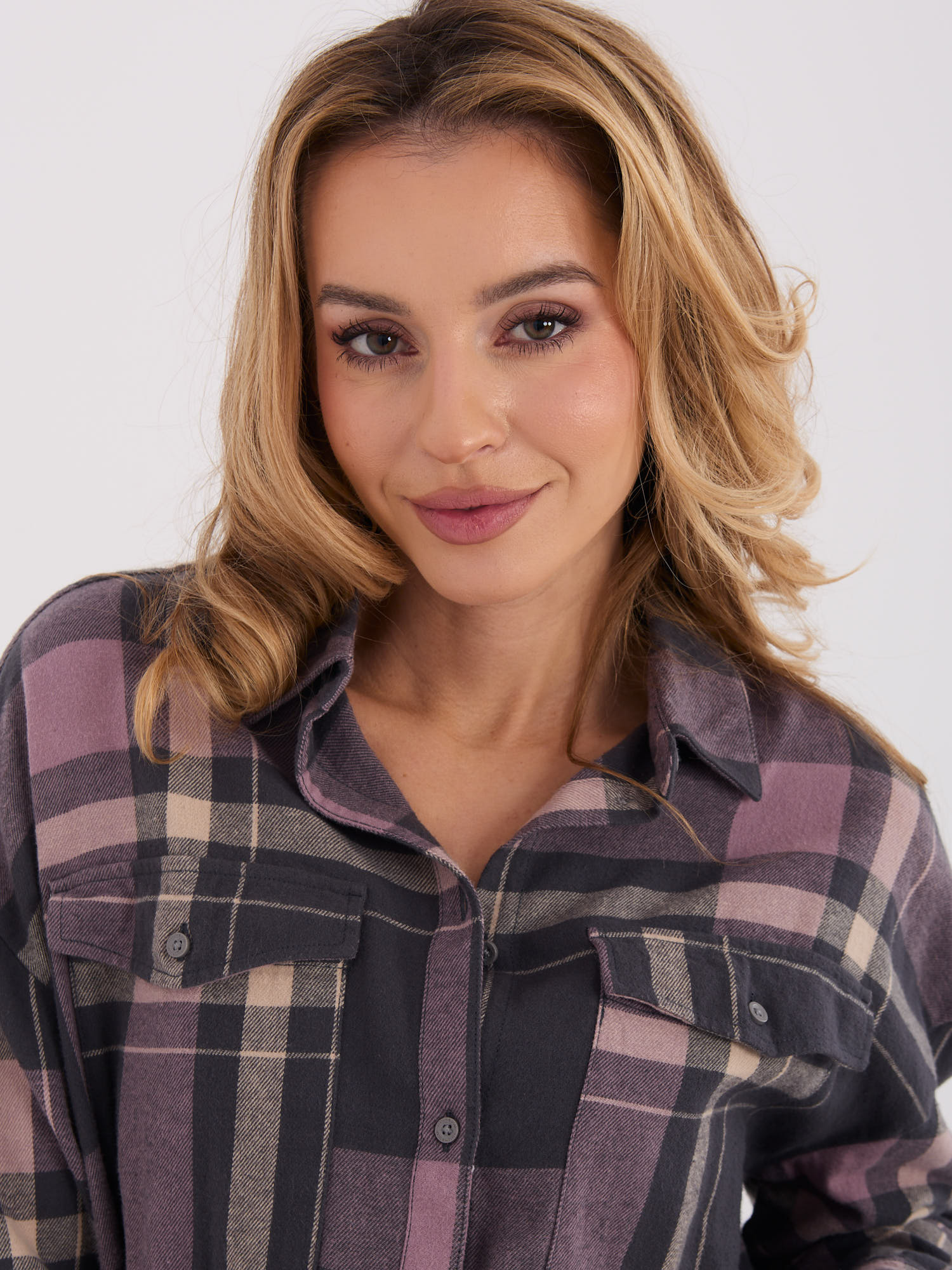 Jasnoszaro-różowa flanelowa koszula w kratę STITCH & SOUL