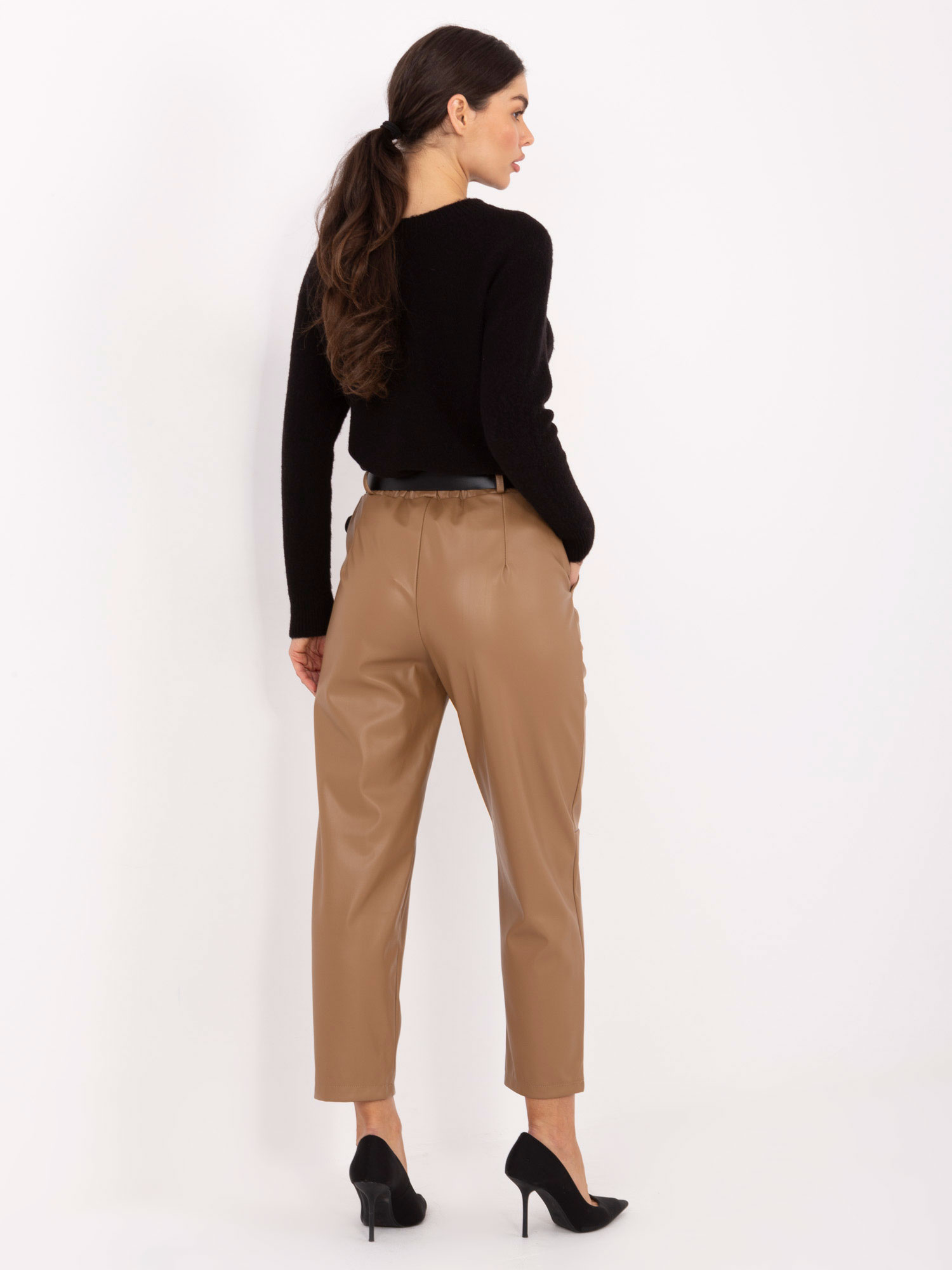 Camelowe spodnie z ekoskóry z nogawką 7/8 RUE PARIS .