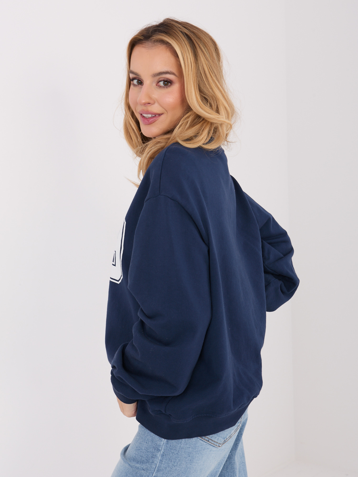 Granatowa bluza z kontrastowym nadrukiem .