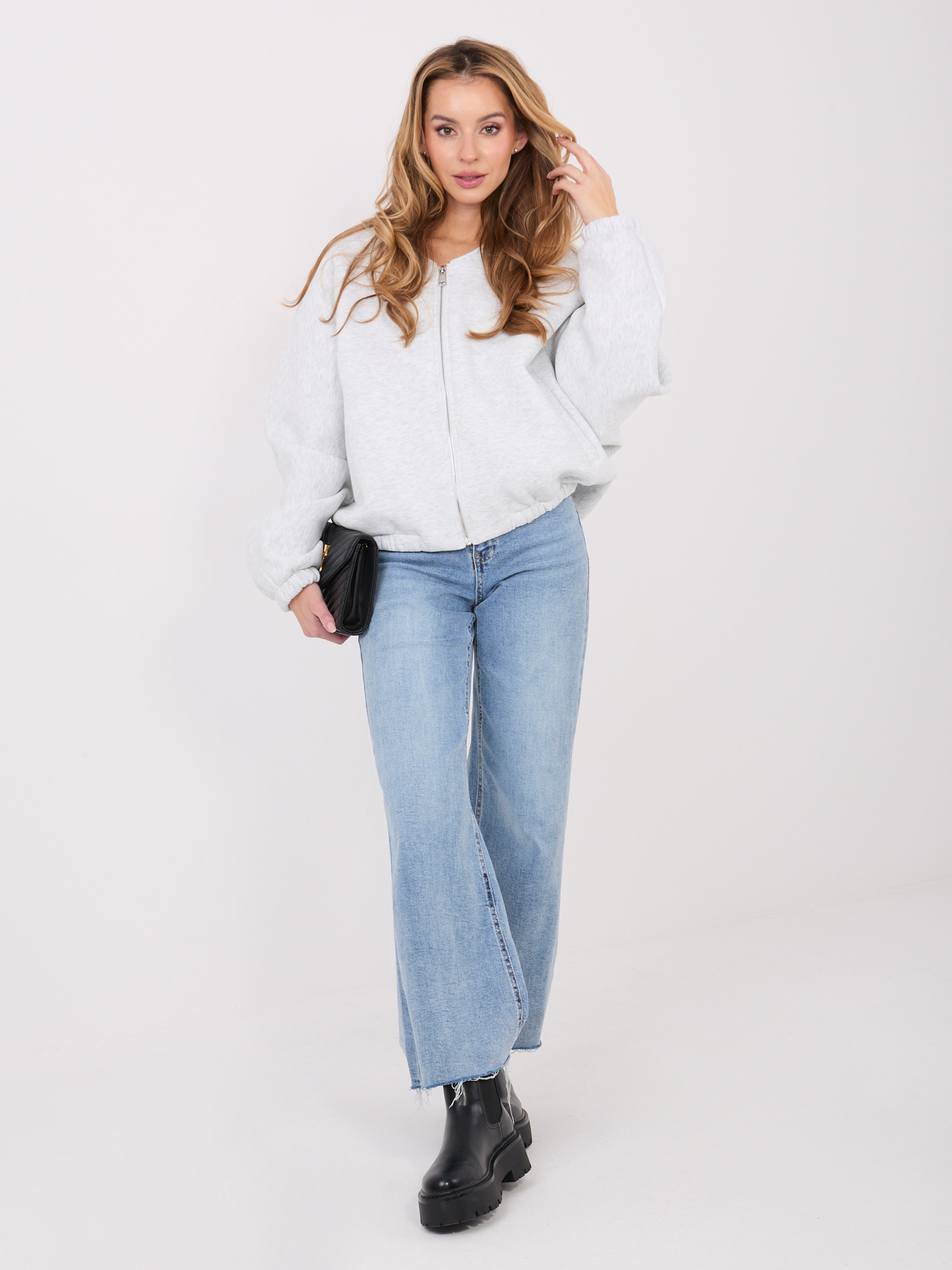 Jasnoszara rozpinana bluza z gumką na dole