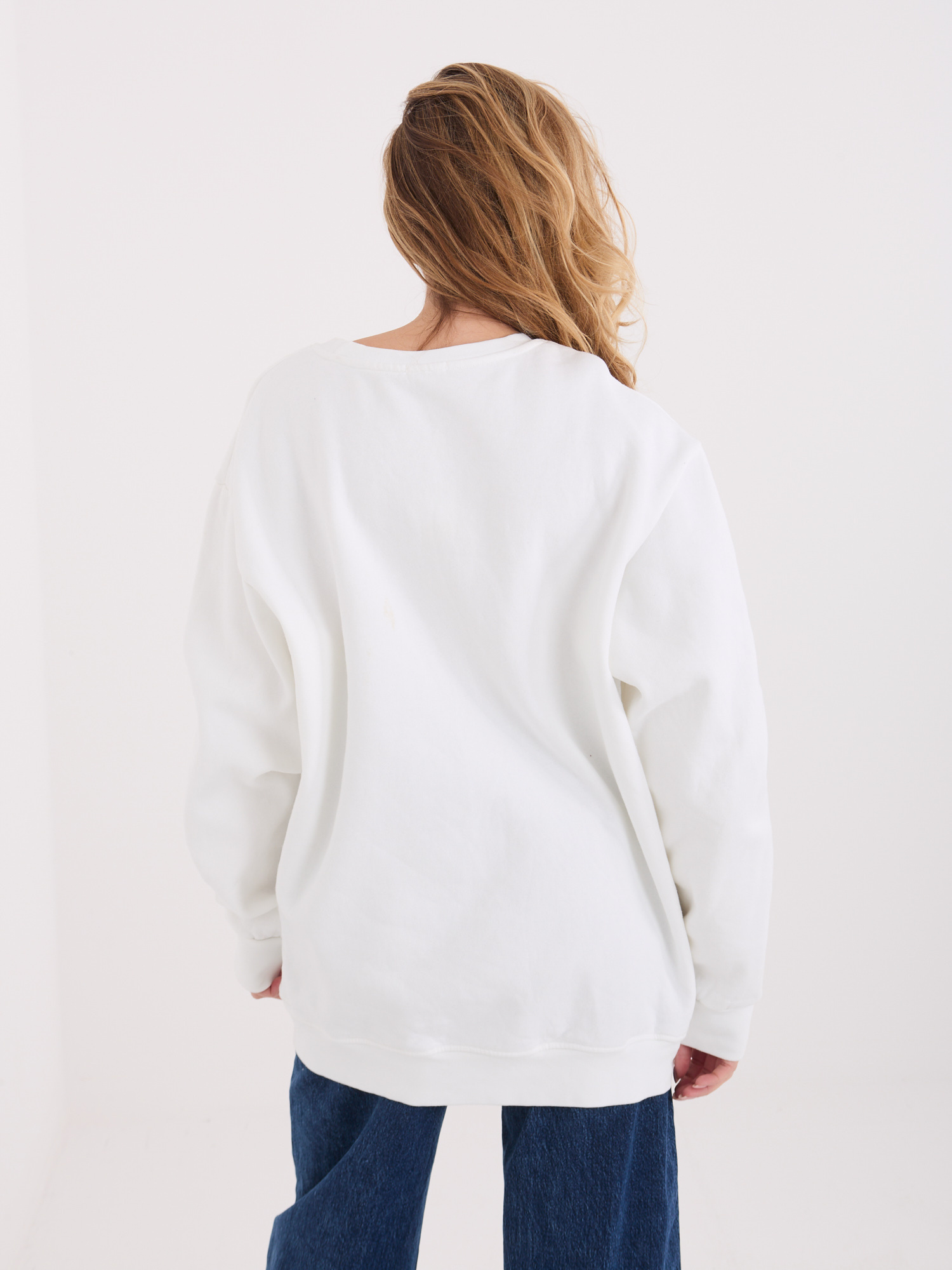 Wymiary bluzy w rozmiarze one size mierzone na płasko: szerokość pod pachami - 63 cm, długość rękawa - 62 cm, szerokość w biodrach - 51 cm, długość całkowita - 73 cm.