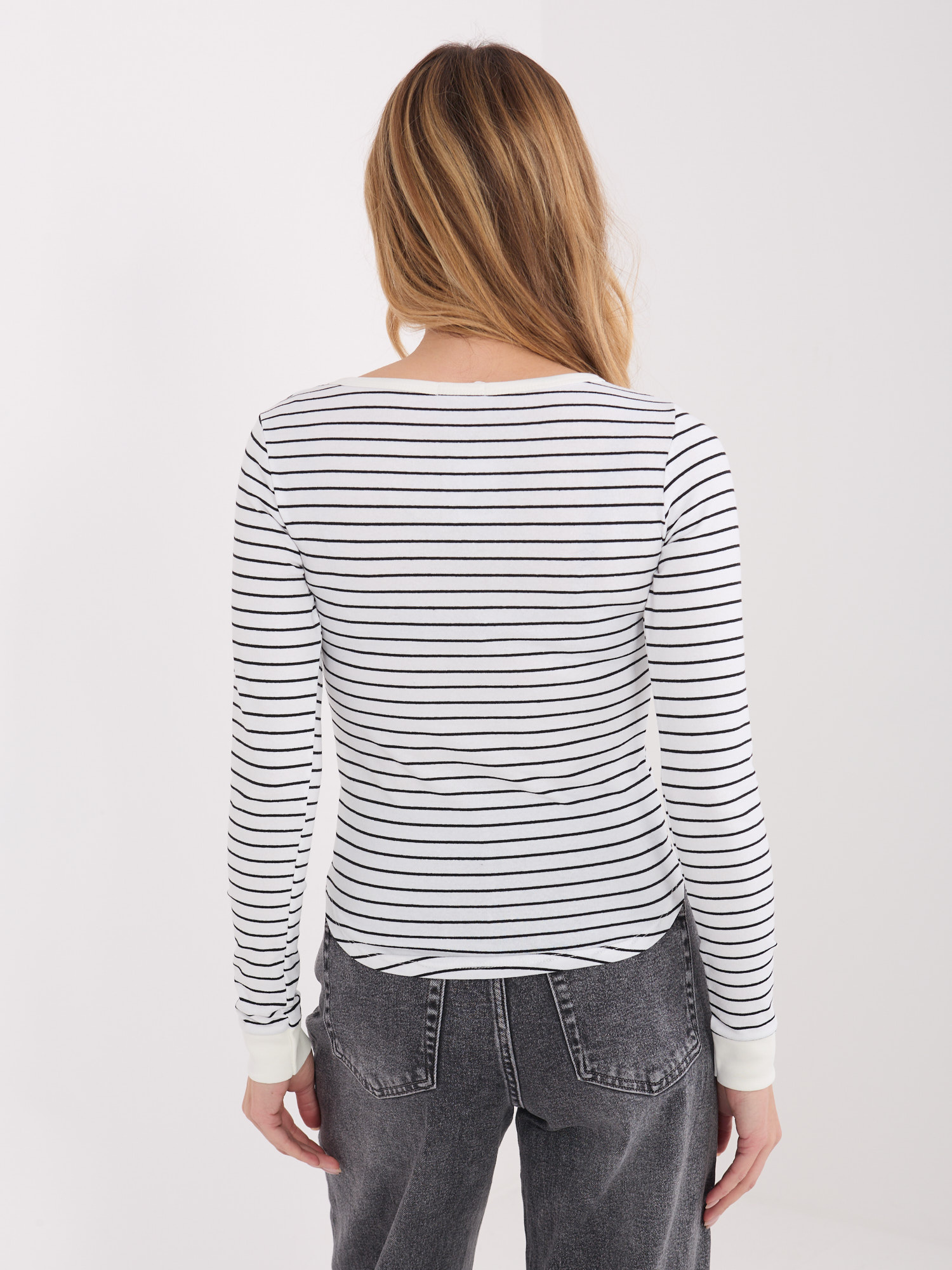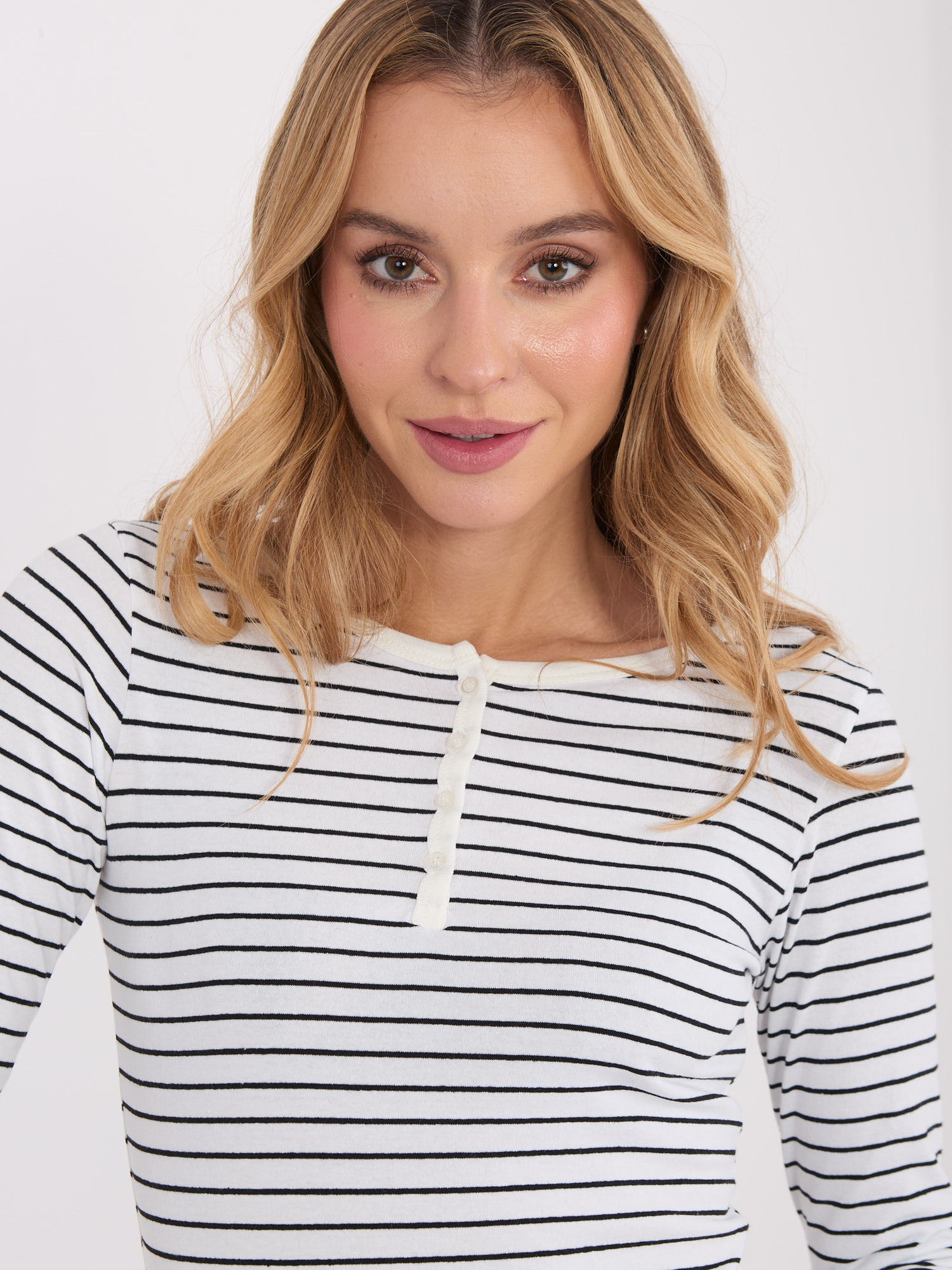Ecru-czarna bluzka z guzikami przy dekolcie
