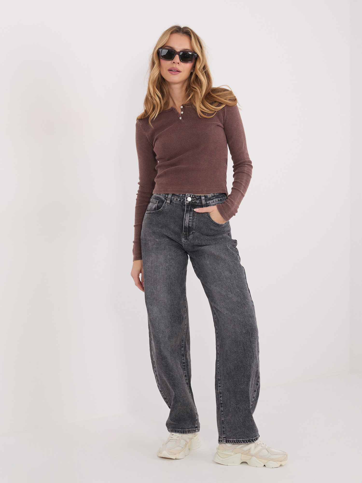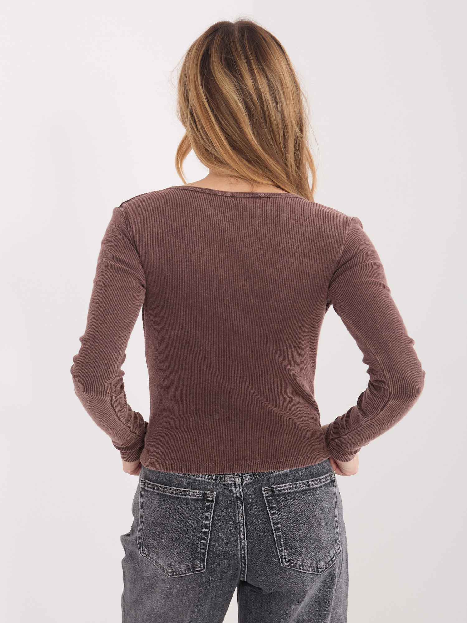 Brązowa damska bluzka basic z okrągłym dekoltem