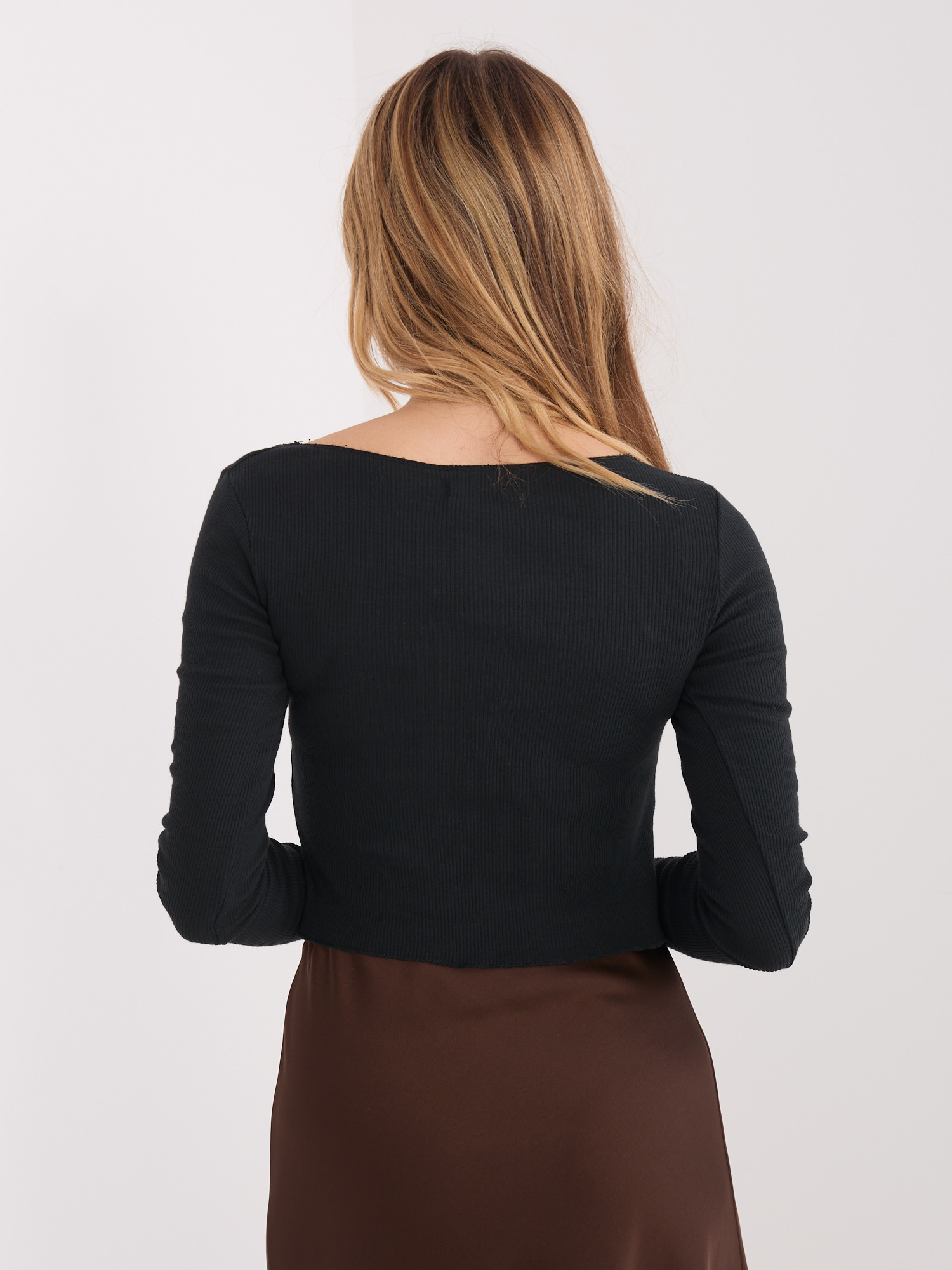 Czarna prążkowana bluzka basic z bawełny