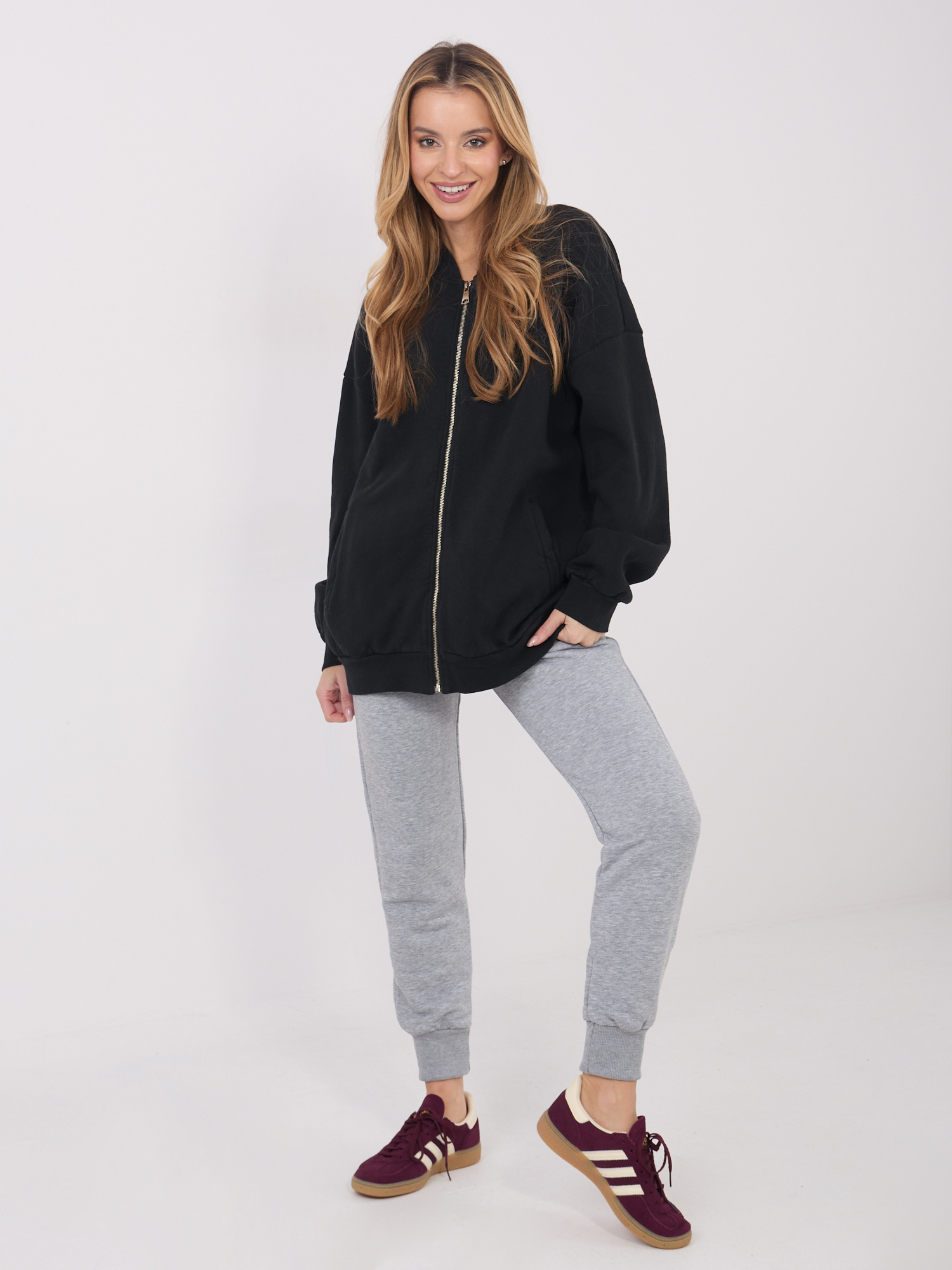 Czarna rozpinana bluza o kroju bomberki