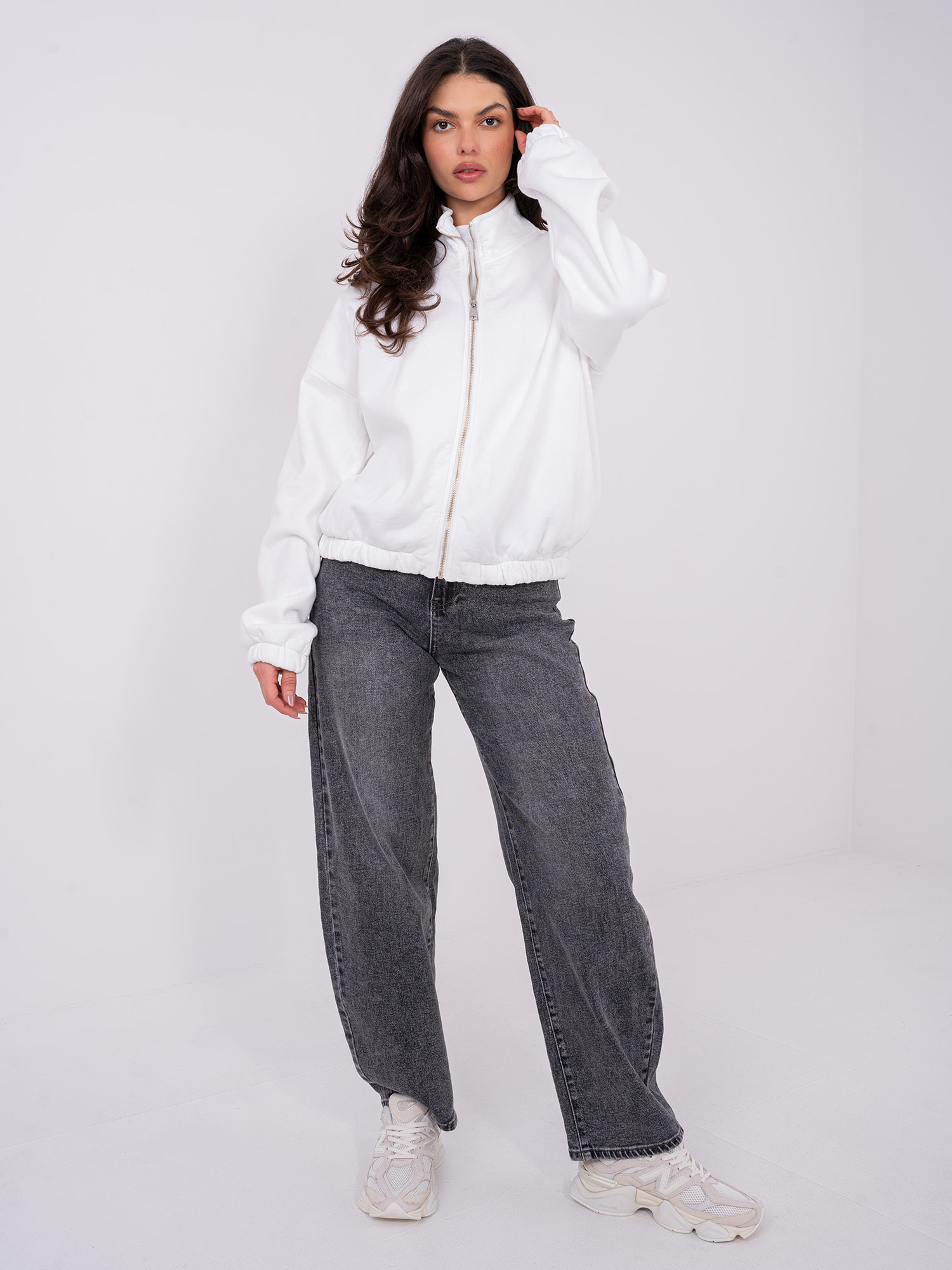 Ecru rozpinana bluza basic z bawełny