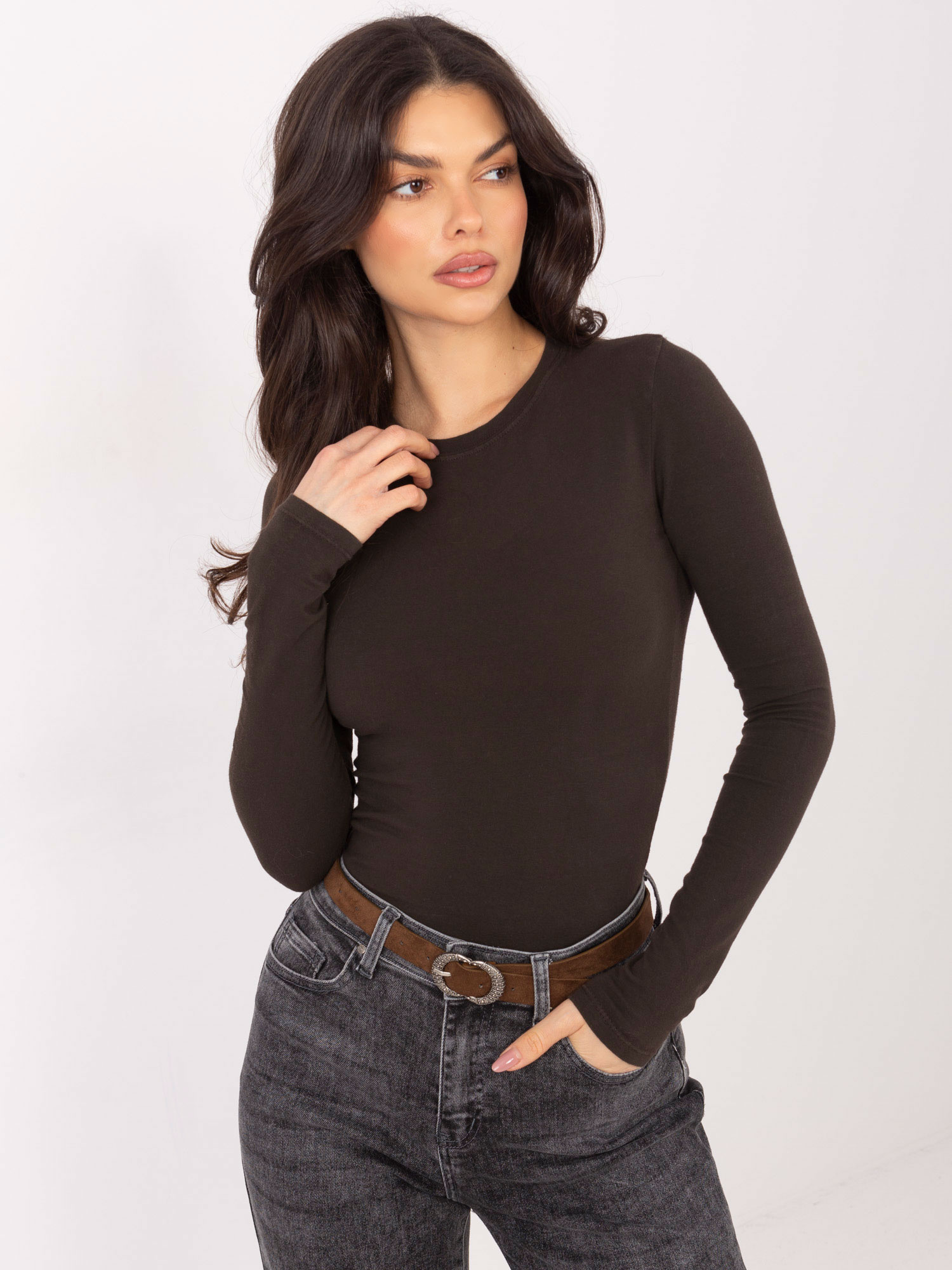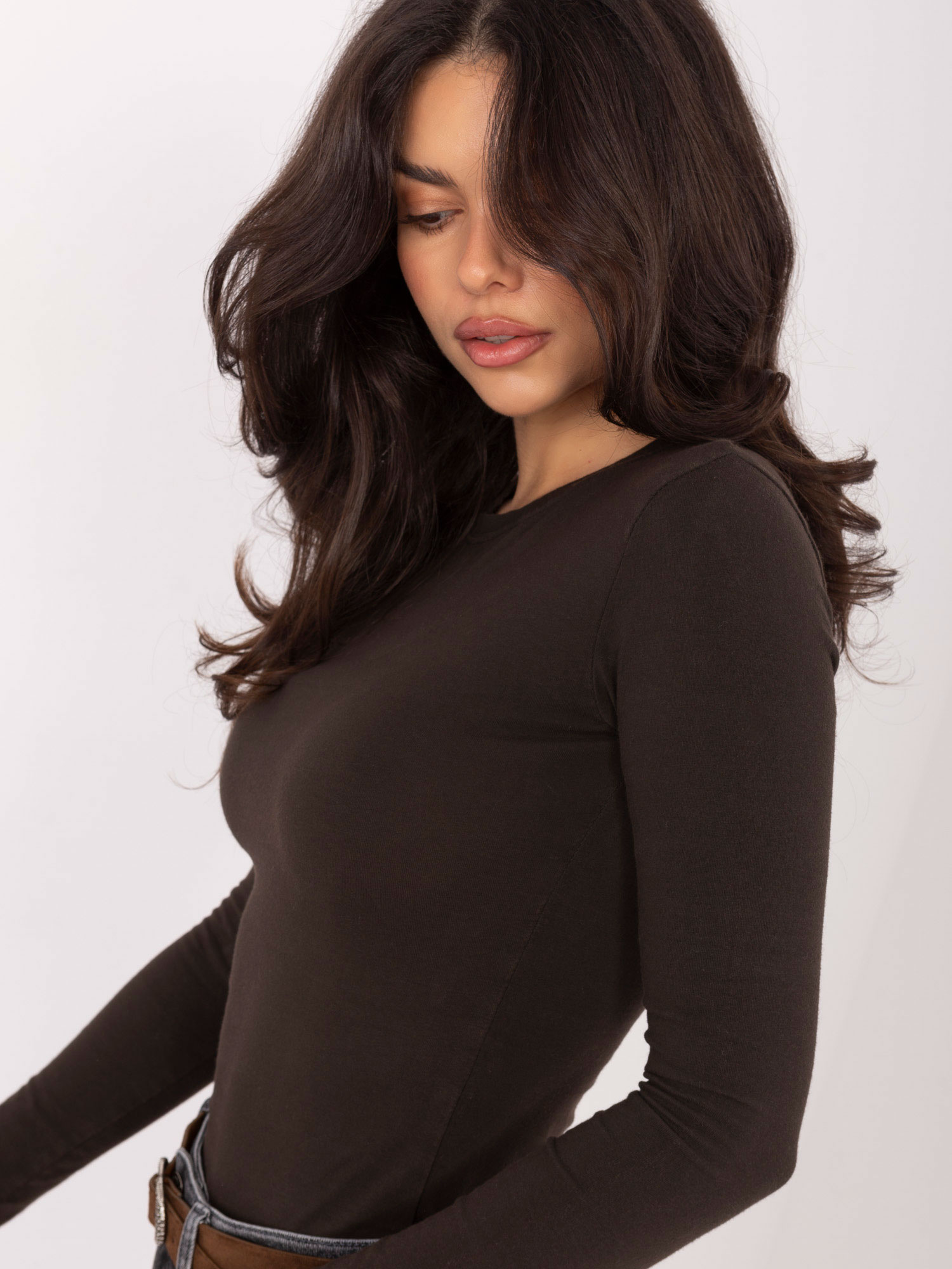 Czekoladowa damska bluzka basic z bawełny