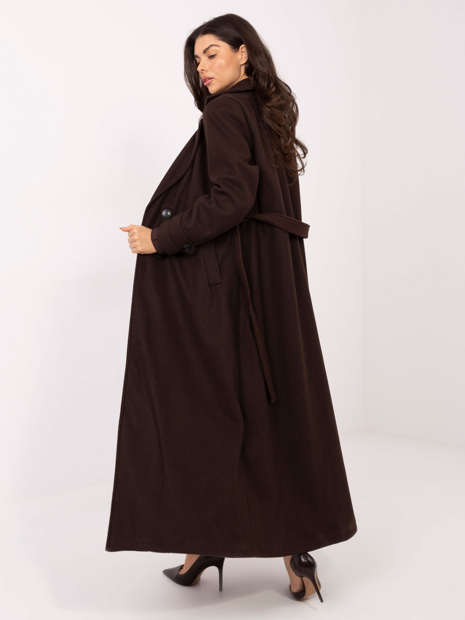 Czekoladowy dwurzędowy płaszcz z kieszeniami .