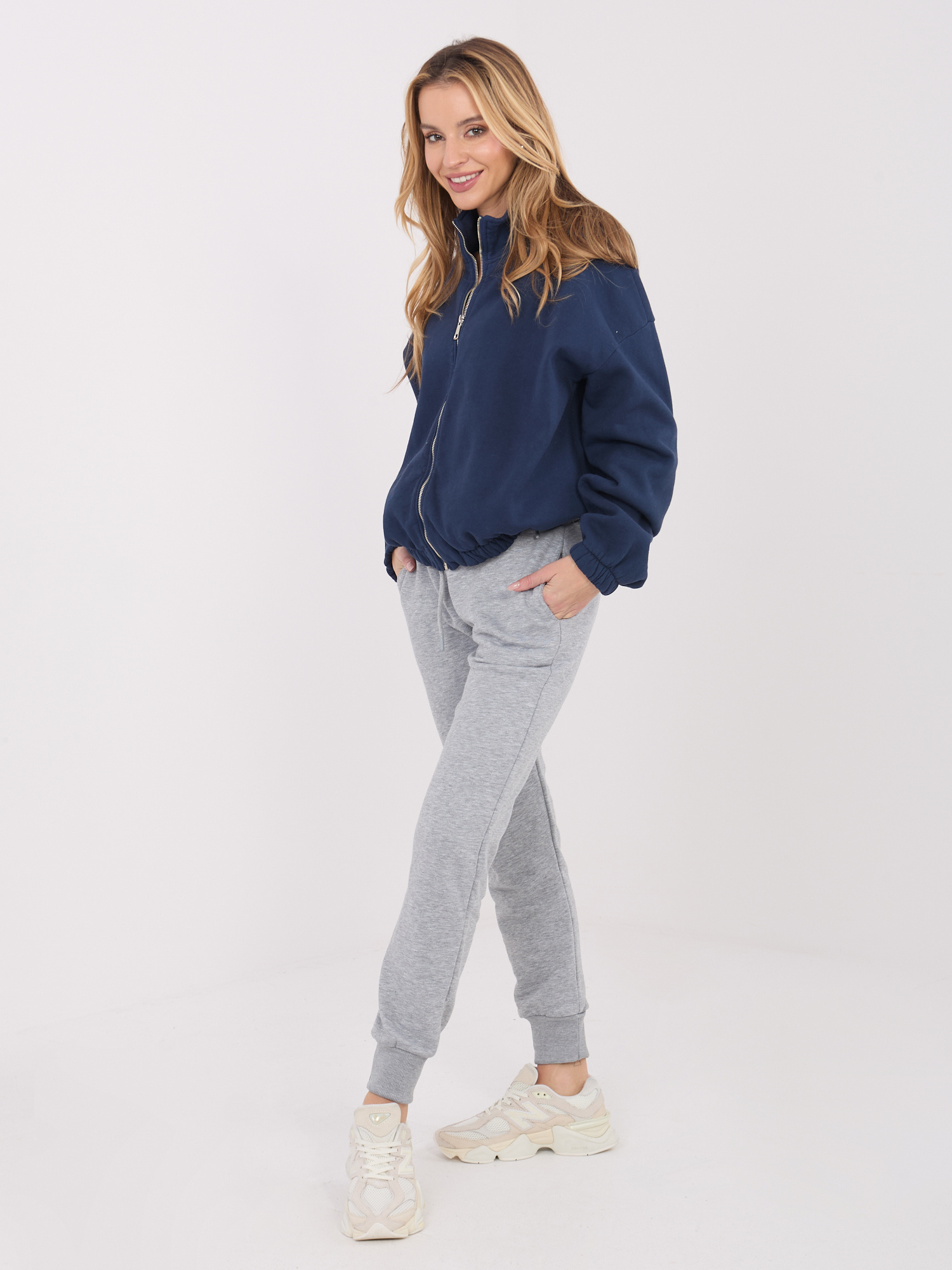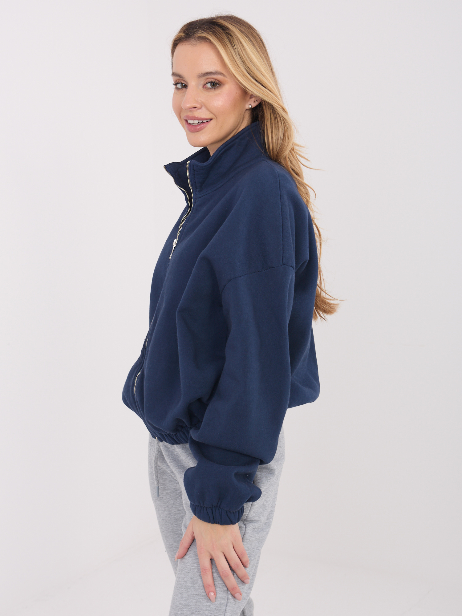 Granatowa ocieplana bluza basic ze stójką